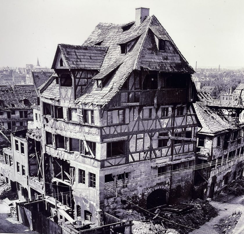 This home is one of very few left standing after WWII. 91% of Nuremberg was destroyed by the bombing here. We learned that during the war his artwork and treasures inside were saved in the underground bunkers, thank goodness. Here’s a photo of what remained of this home after the war.