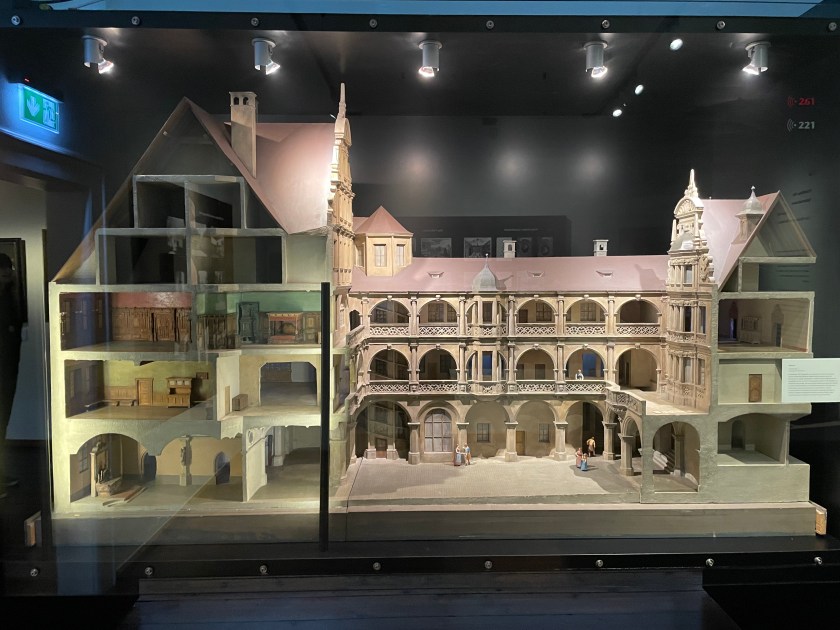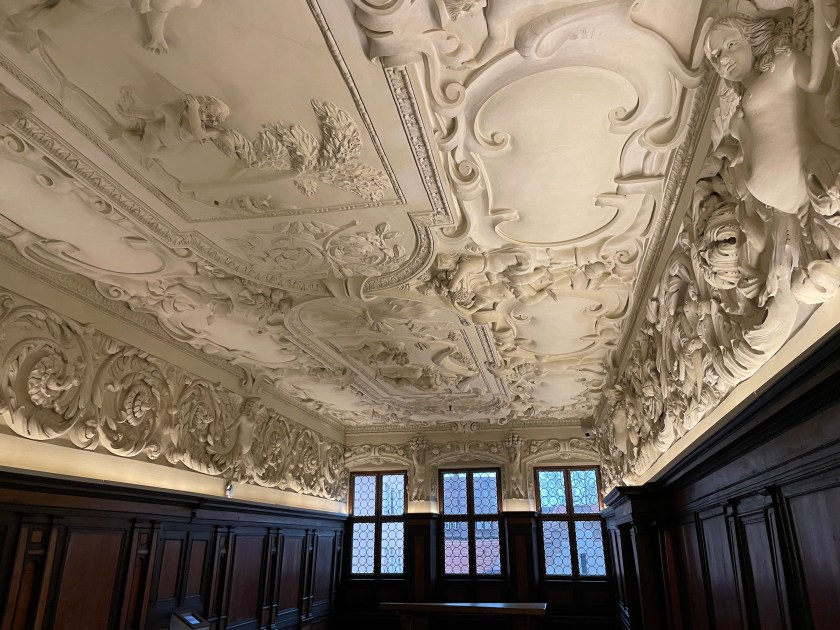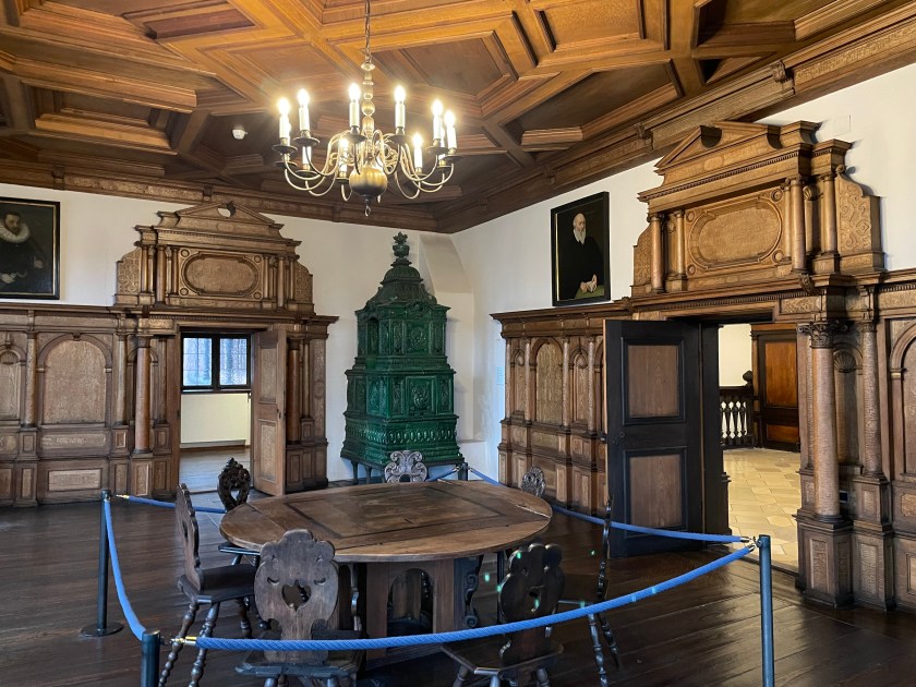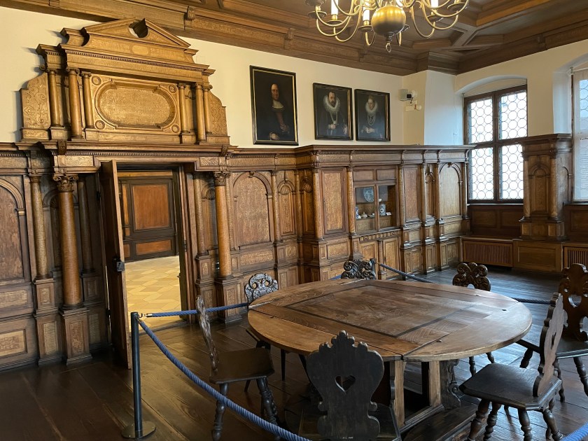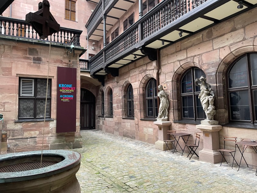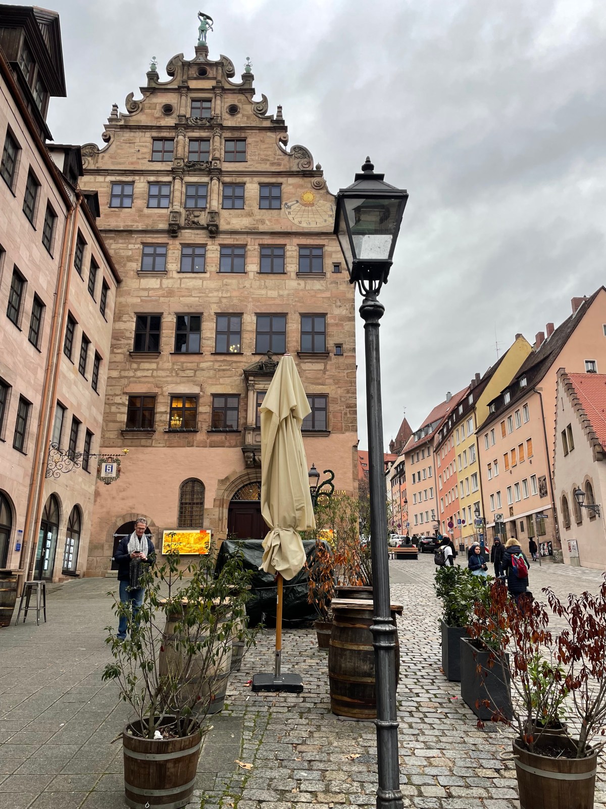 This fancy house is called the Fembo House. It was the residence of the Dutch silk dealer, Philipp van Oyrl, erected between 1591 and 1596. It’s the last still surviving merchant’s and patrician’s residence in Nuremberg from the Renaissance and Baroque period. Of all the historical homes in Nuremberg, the main section of the Fembo House is the only one to survive World War II intact.