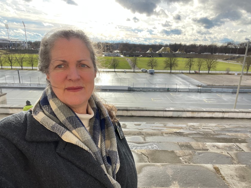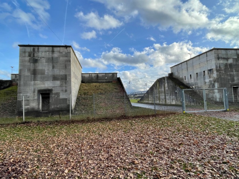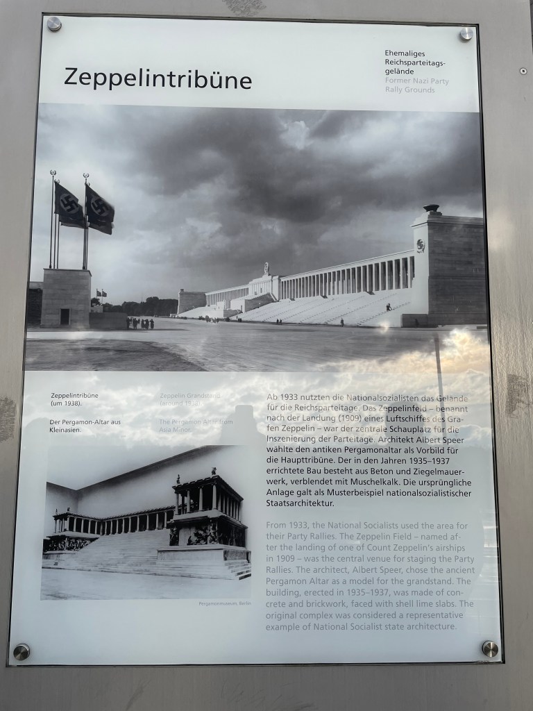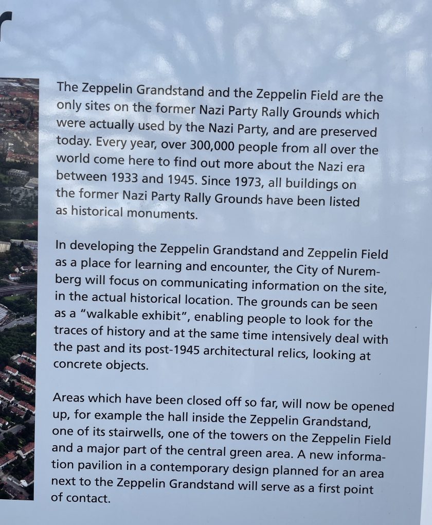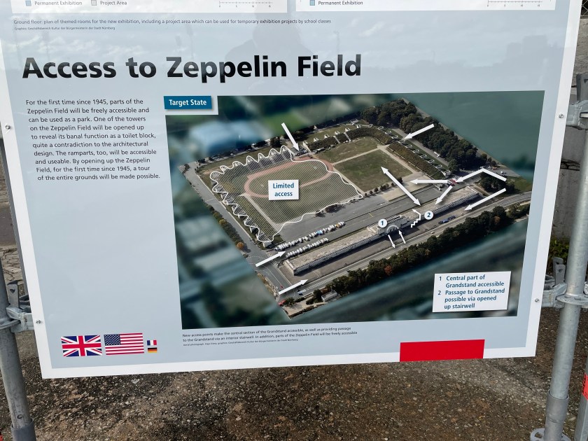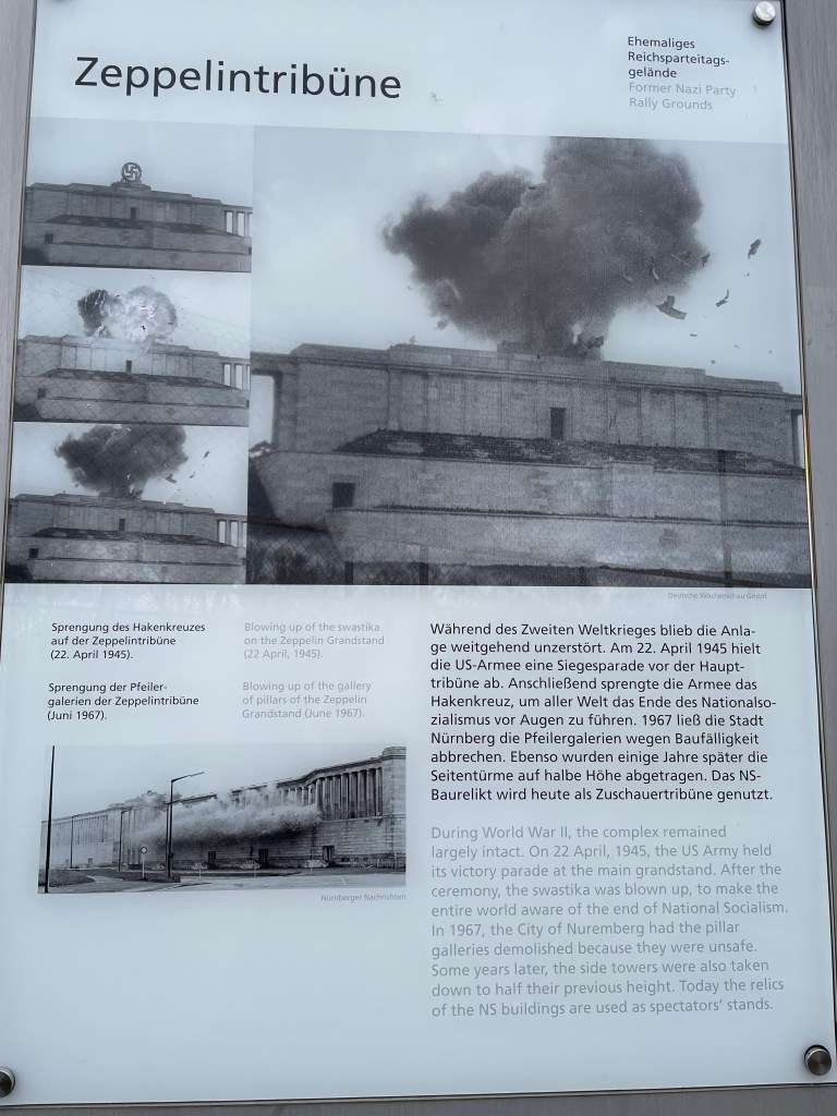 If you look at this wikipedia article and the part about this field, there is a short Film of the swastika on the grandstand being destroyed by the American allies on April 22, 1945. The first time I watched it (in the Documentation Center) I cheered out loud.