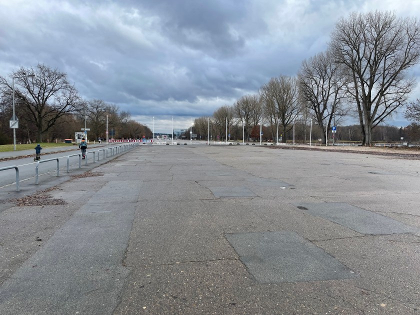 This is the Great Street, or parade route for Hitler’s marching troops and displays of equipment. Today it’s used as a parking lot for events held here.
