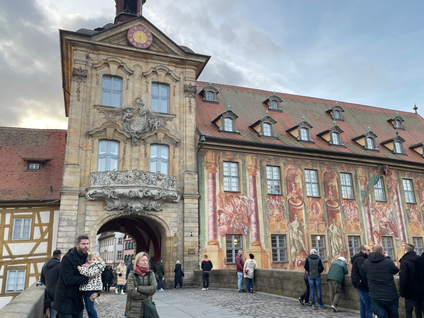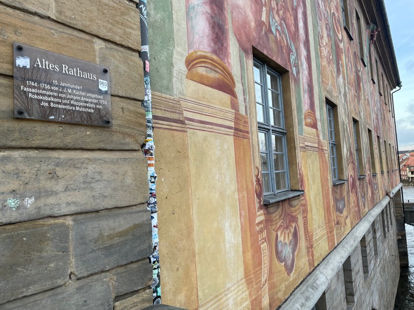 This is the famous town hall (1375) that sits on a small island in the river. The frescos and murals have been restored in more recent years.
