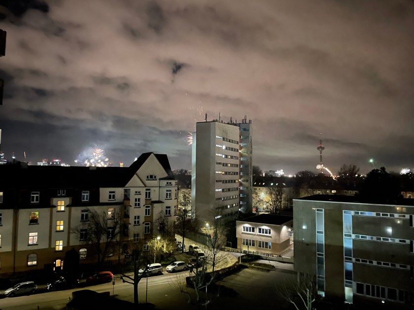 The fireworks went on without a pause for a solid 30 minutes, then they thinned a bit, but contined until 1:00 a.m. We watched people on the street right below us shooting rockets off, some even hit our apartment building!