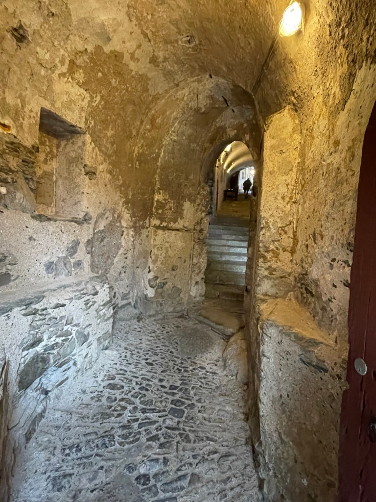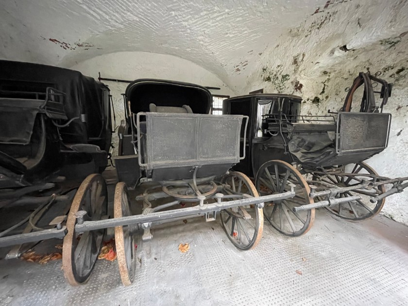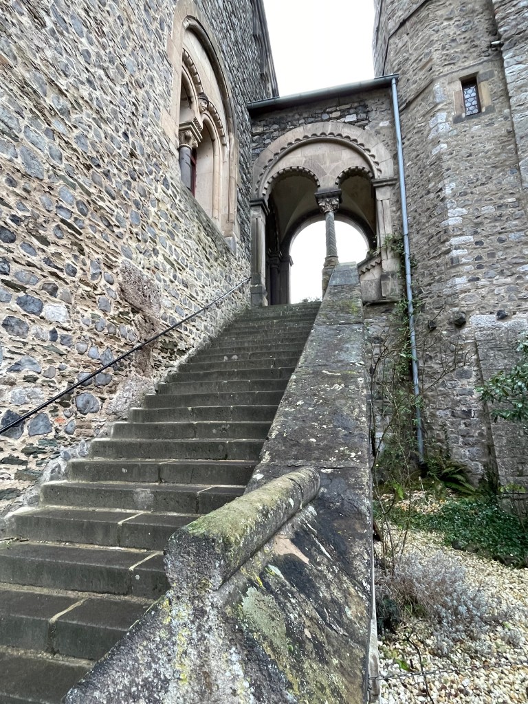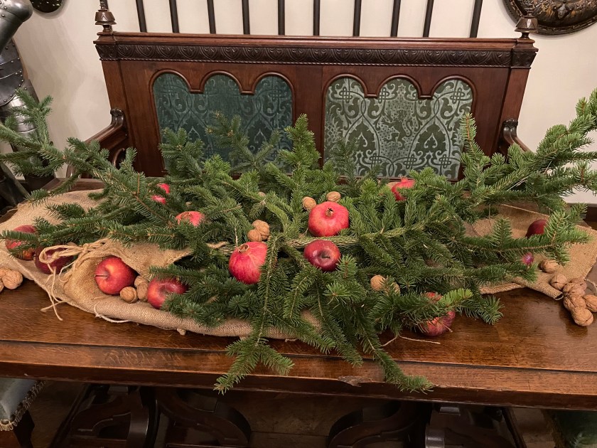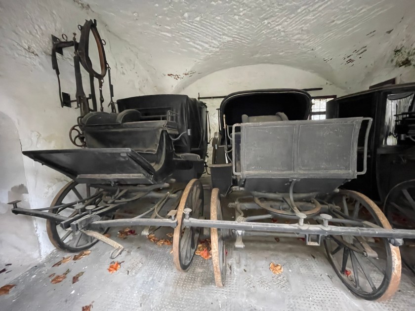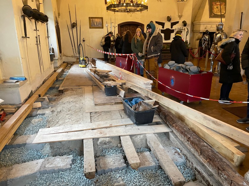 In more recent centuries, they’ve made it look more romantic, more like a princess castle. I think to attract visitors to help keep it going. They have events there now and musical performances. It was really friendly and fun to visit. We went into a wing of the castle that had period pieces in it, starting with a great hall full of armory. They had several full suits of armor and one seated on an armored horse with a javelin–the whole deal. There were rooms with paintings of hunting and animals and several rooms filled with furniture and portraits of the family. We weren’t allowed to take photos in those rooms.