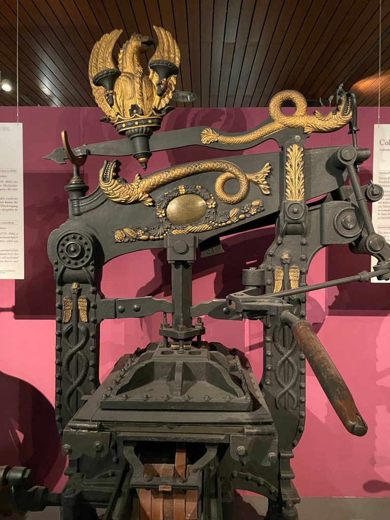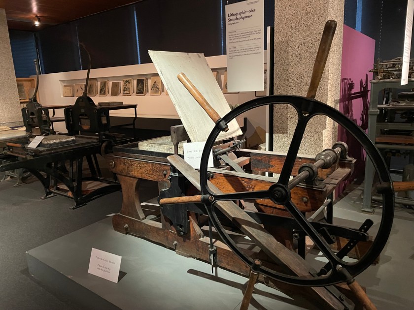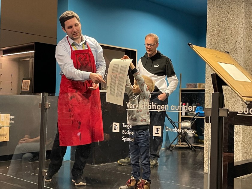 The museum has regular demonstrations using a press patterned after the original press Gutenberg created.
