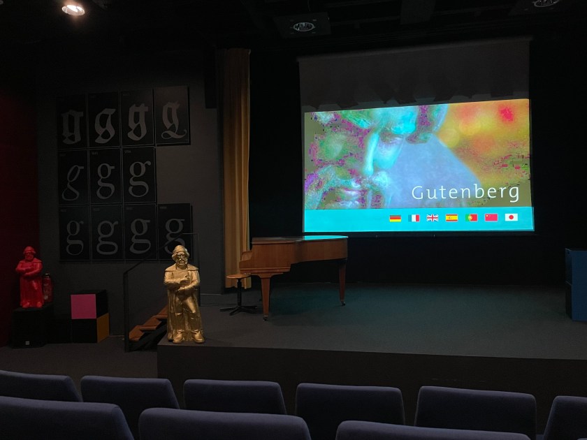 We were the only English speakers in our group, so the kind museum guide gave us a private showing of an English film about Gutenberg, which was excellent.