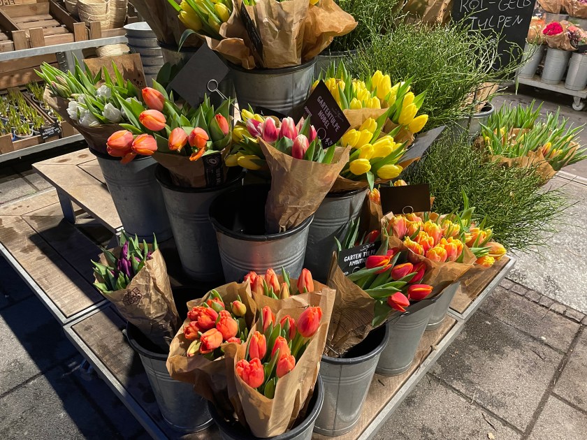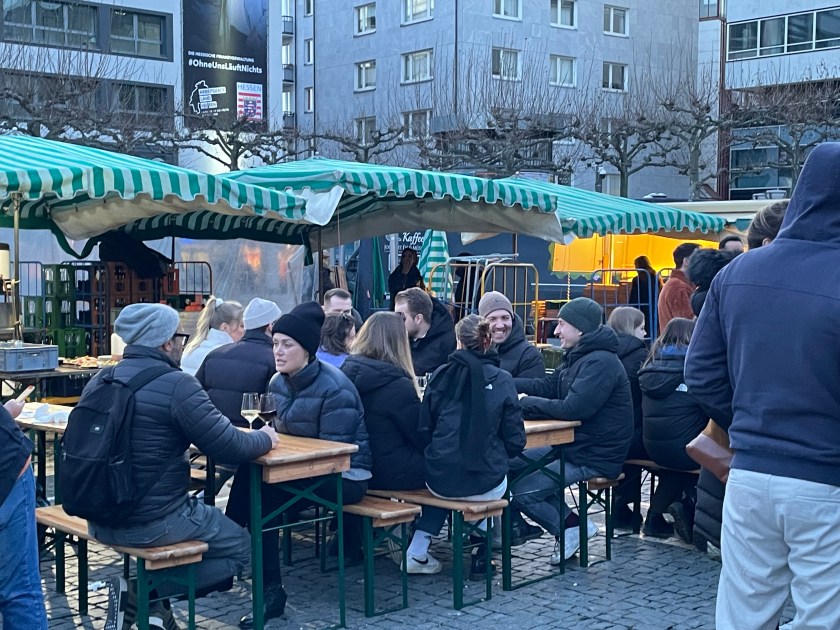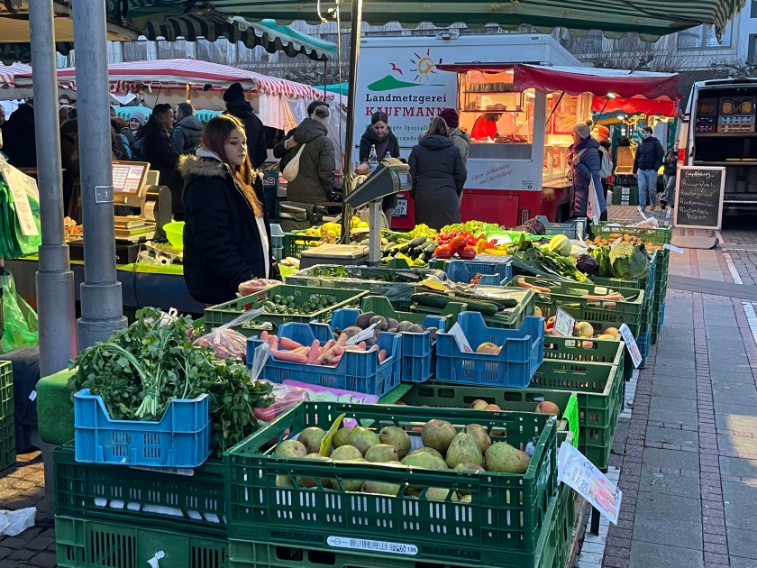 After visiting the 2 Jewish Museums, our time had run out for any other museums, so we went into town, to the Zeil, or the main shopping boulevard to have a look around. Along the way we saw more demonstrators, we found a few pastry shops, and we enjoyed a fun farmer’s market.