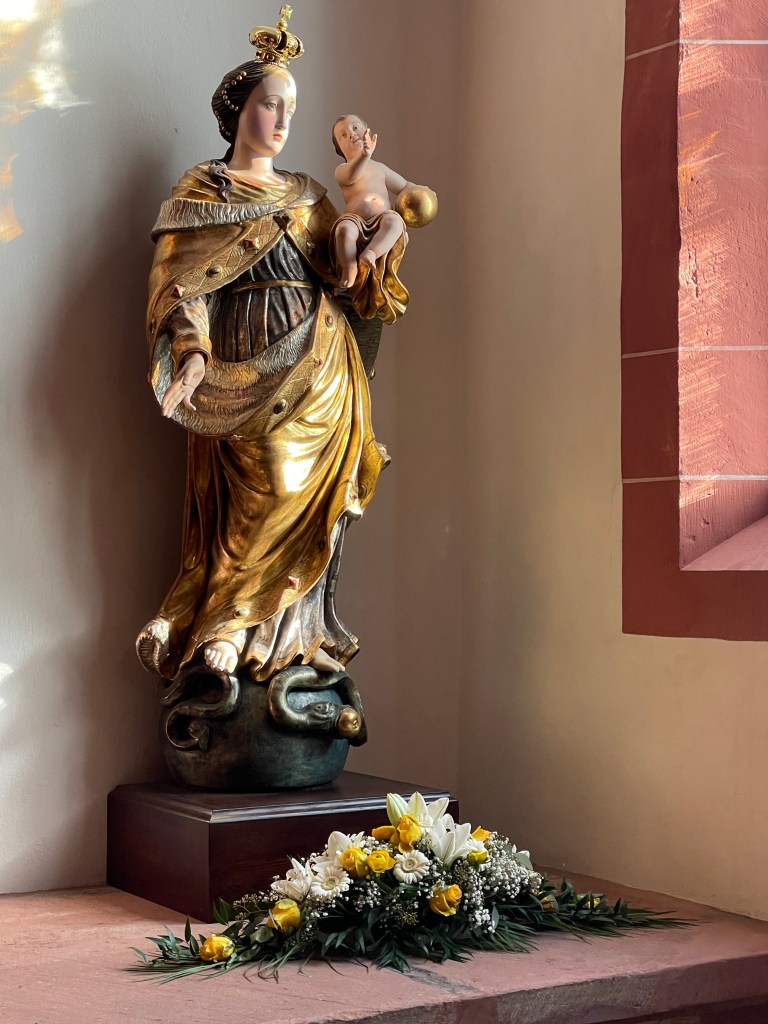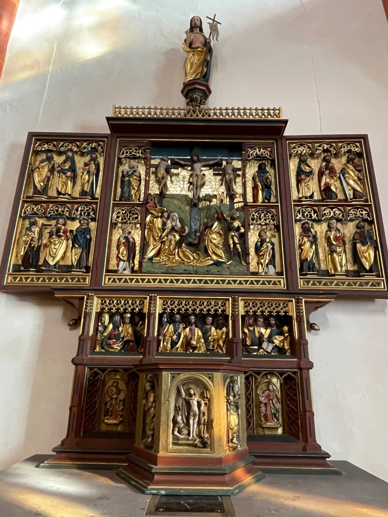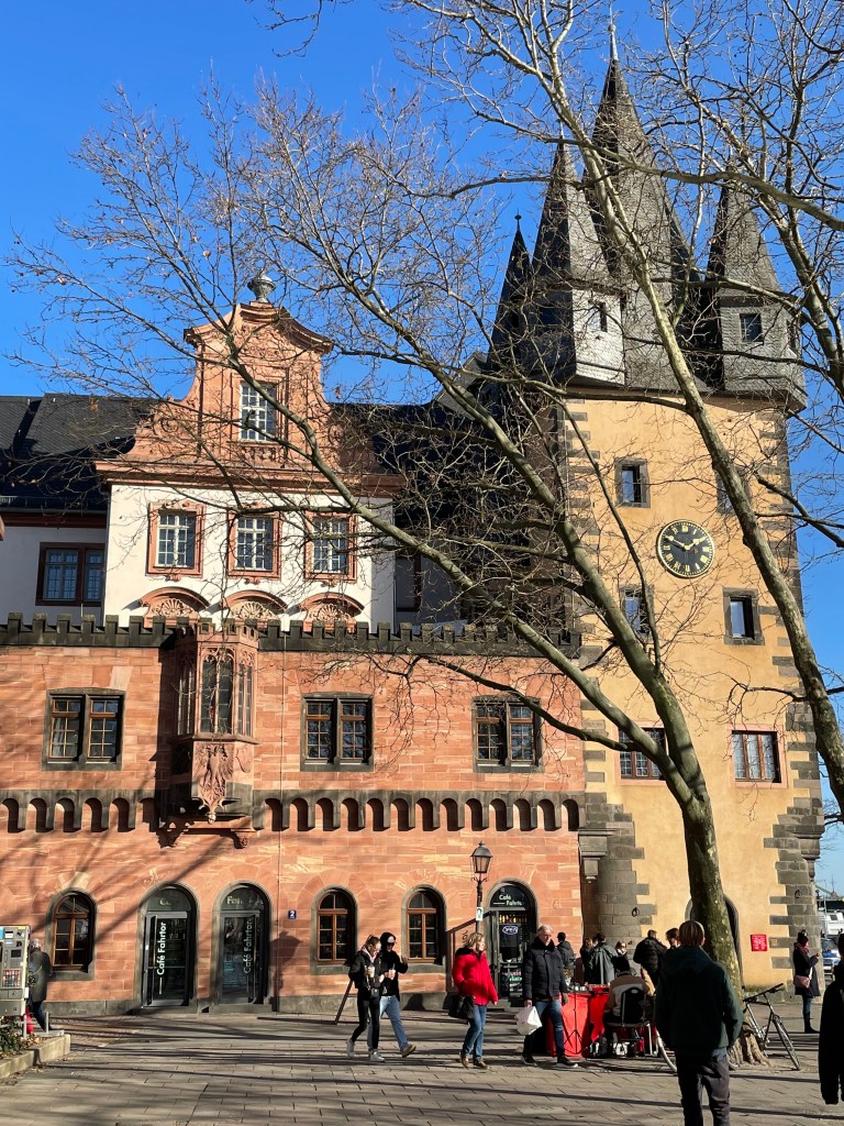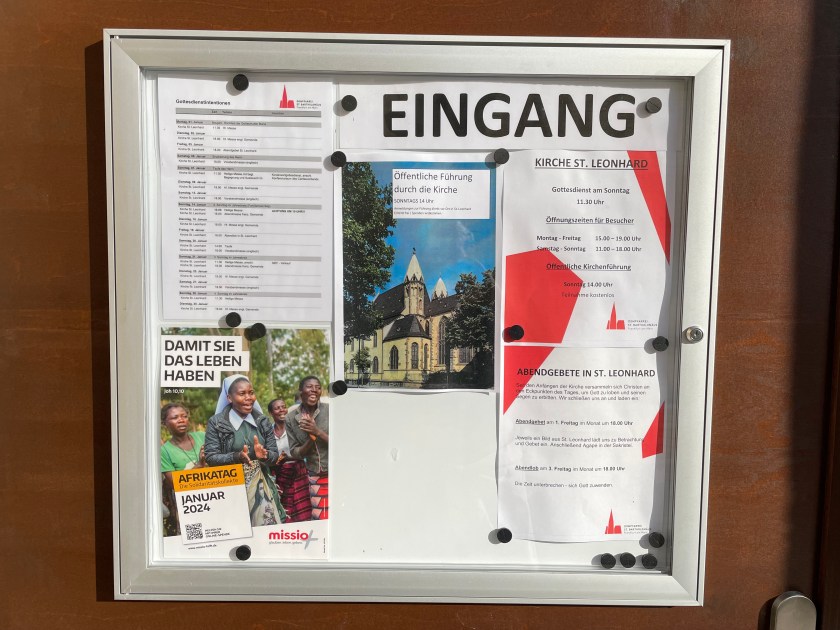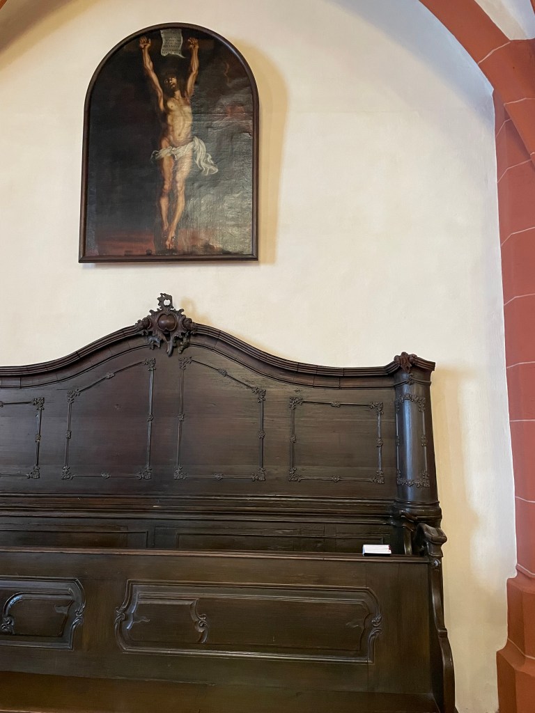 A few minutes down the street, along the river, our next stop was at St. Leonard’s church. St. Leonhard is a parish of the Roman Catholic Church in Frankfurt, dating back to 1219, when it was erected in the center of the town close to the river Main. It stands as a Romanesque-style basilica. From 1425, it was remodeled to a hall church in late Gothic style. Today it’s used by English-speaking Catholics. You can read lots more about it here.