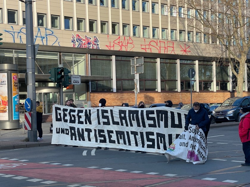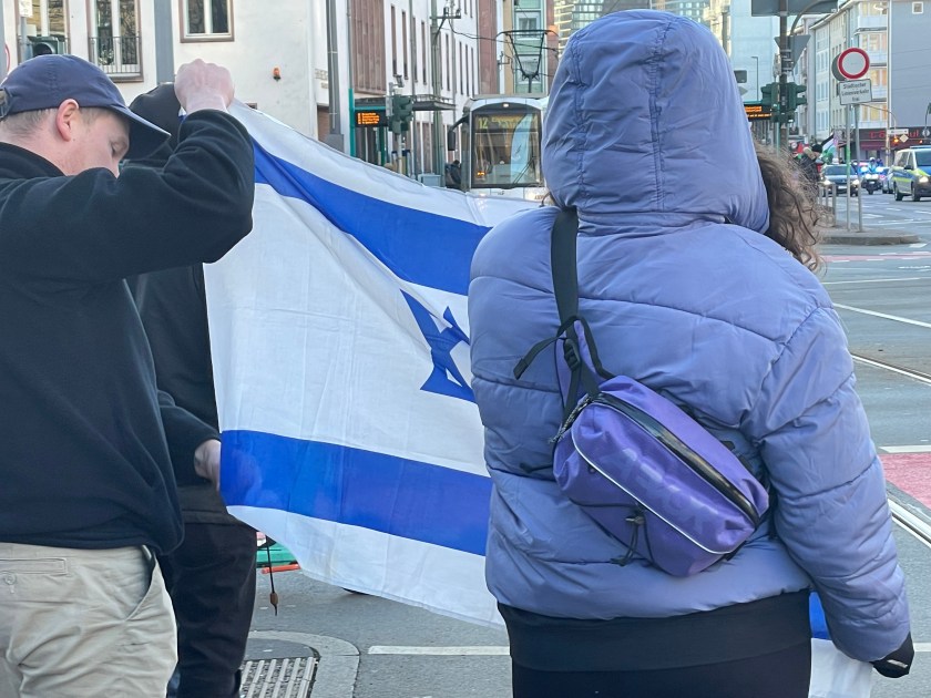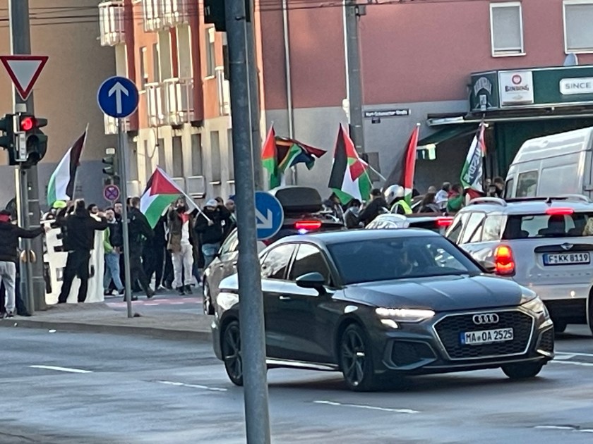 As we approached this Judengasse Museum, we heard demonstrations in the street coming toward us. There were police cars driving before those marching with Palestinian flags. They were yelling and shouting and the people at the museum were nervous and hurried our group in (I was out in the street taking pics). They were very cautious and security was high.