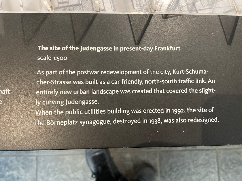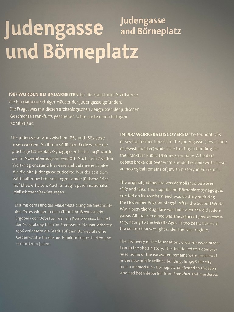 Next we walked to the other Jewish Museum, called the Judengasse Museum. Both museums work together to tell the story of the Jewish people in Frankfurt.
