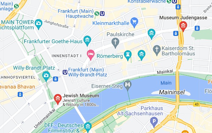 Below you can see where the Judengasse was situated under what is now current-day Frankfurt.