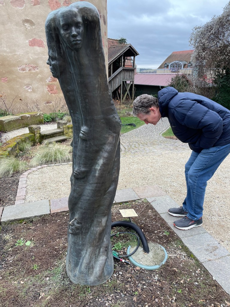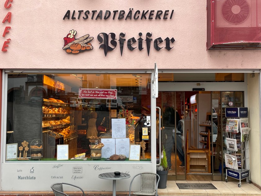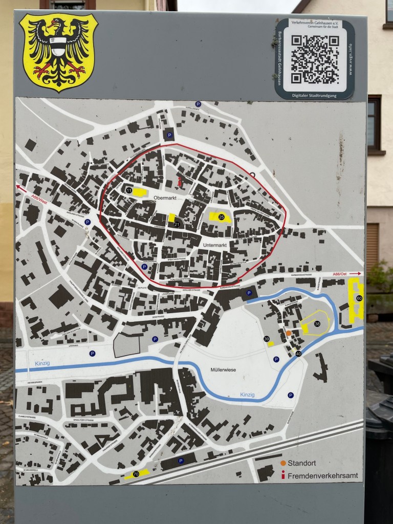 The real appeal of the city was just walking through the streets and squares, with the thin, meandering Kinzig River. We followed a nice walking path “Stadtspaziergang” prepared by the city and saw some interesting, enchanting sights. We saw parts of the city wall and various watch towers, including one which became later known as the Hexenturm because it was used to hold those women on trial during the witch-persecution period. A 1986 sculpture in recognition of these victims is quite moving. We saw historic homes of all shapes and sizes, usually in fachwerk, and used for various purposes. We saw the Rathaus whose roof was struck by lighting and caught fire in 1736. Immediately after the lighting, a hailstorm put out the fire and saved the building, a miracle celebrated every August 15th. We saw the 16th-century meeting place of the prince-electors of the Holy Roman Empire, now a hotel. We saw the birthplace of Hans Jakob Christoffel von Grimmelshausen (1621/22–1676), supposedly the most famous 17th-century German writer, now a hotel named after him.
