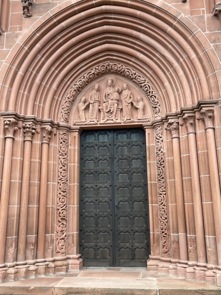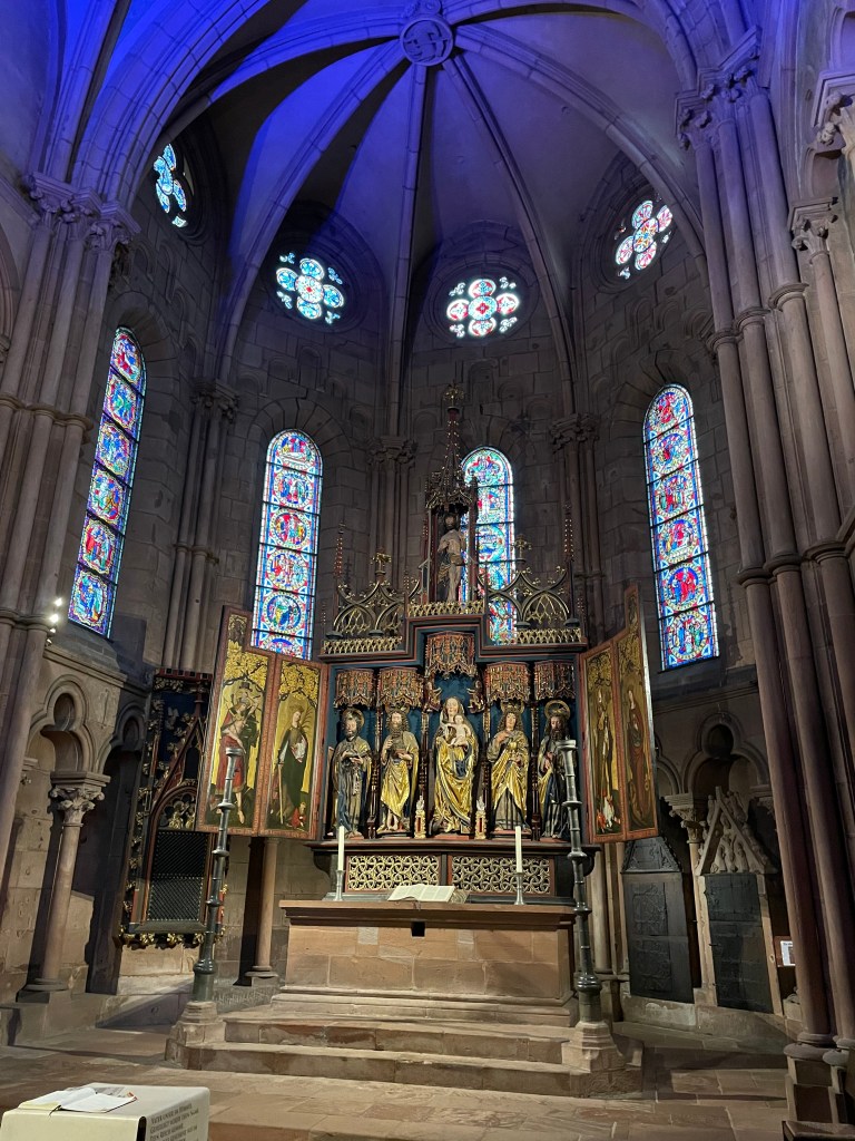 Today’s outing was planned for Fulda and two additional small cities along the way to Fulda: Gelnhausen and Steinau an der Strasse. All these cities are on the German Fairy Tale Route and on what’s called “die Hohe Strasse” or the High Road, earlier called the Via Reggia during Holy Roman Empire time. This road was the historic trade route and had great economic significance for interregional trade and bartering (especially between Frankfurt and Leipzig). It is the oldest and longest road link between the East and the West of Europe, has existed for more than 2,000 years, and connects eight European countries across a distance of 4,500 km.