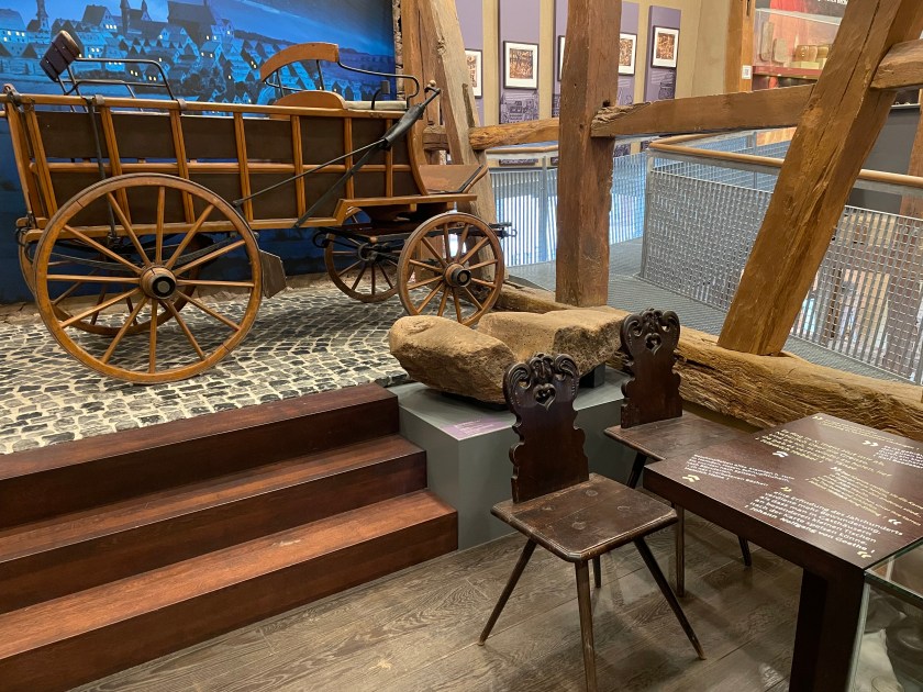Across the courtyard from the Grimm family home is the Steinau Museum, built in 2006 in the renovated Amtshof Barn. It contains more about the city and its role on the trade route, the various famous citizens and visitors to the city, and the pottery they became famous for. It was small and interestingly done.