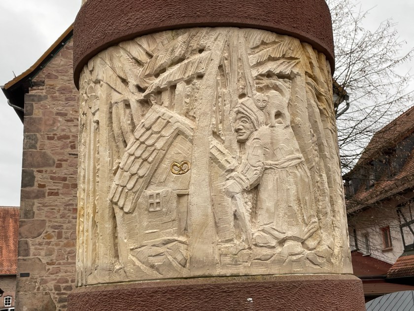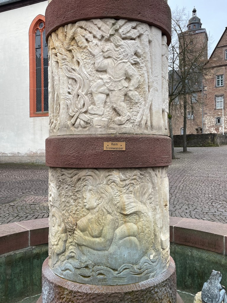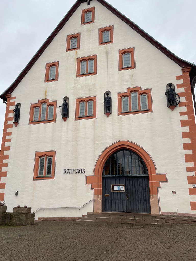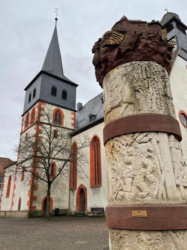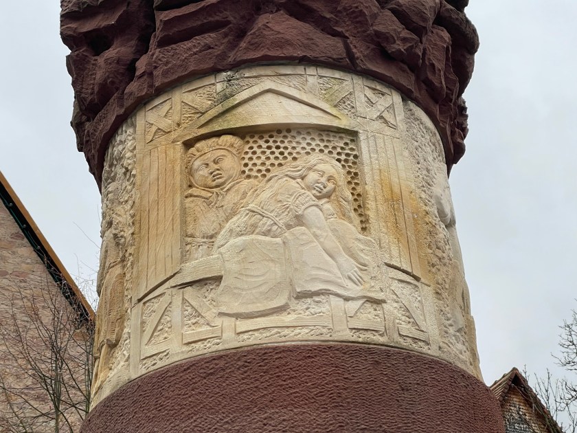 This city is known as Brüder-Grimm-Stadt and is half as big (population ca. 10,000) as Gelnhausen. We navigated to the castle and parked in free parking there. There were very few people out on the streets on this somewhat cold Saturday. We walked through the castle courtyards but will have to wait until March before seeing the inside where a special Grimm Brothers exhibit currently stands.