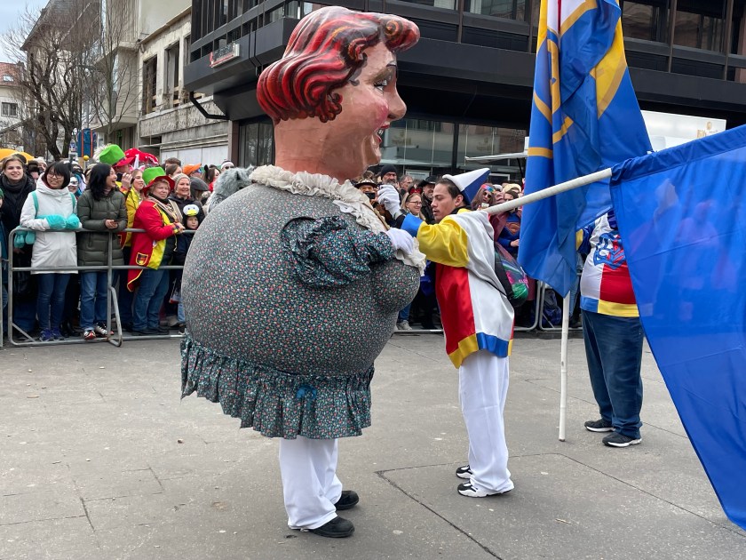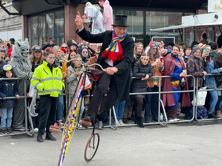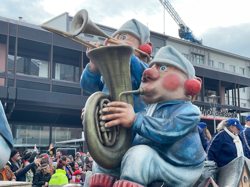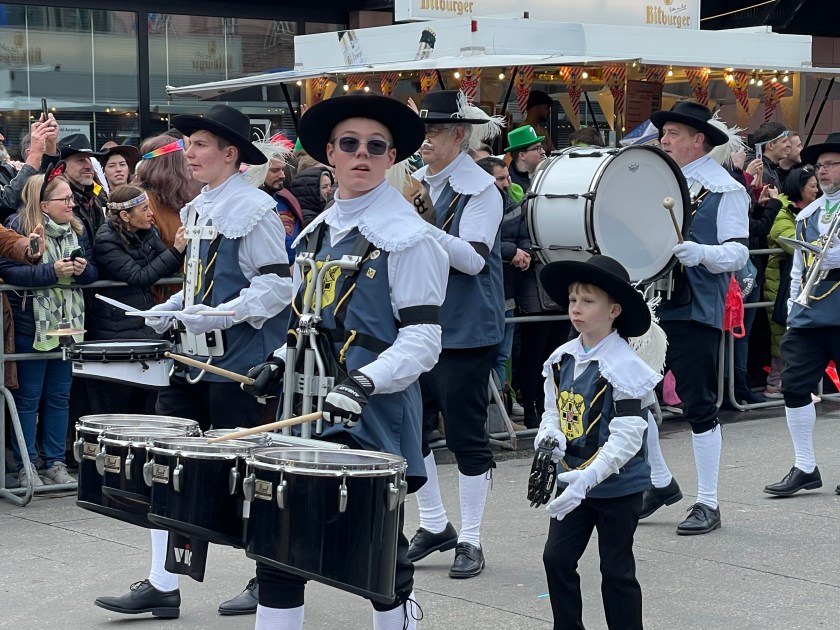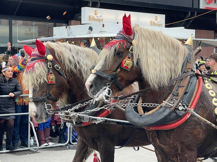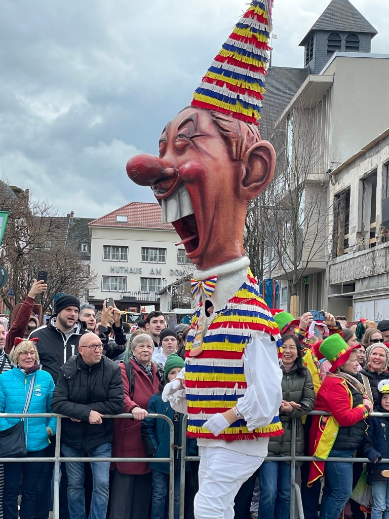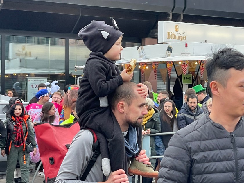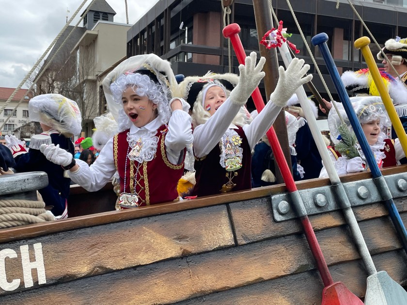 The actual parade started just after noon. We quickly learned that there was only one word we’d need to use the rest of the day: “HELAU!” this is the traditional Karnival shout in Mainz. The people in the parade shouted it to us and we shouted it back. Maybe a thousand times.