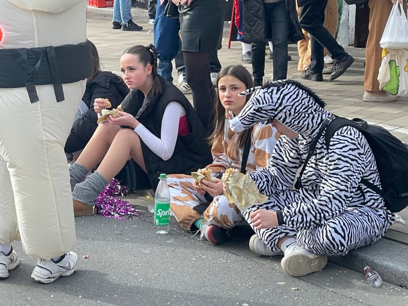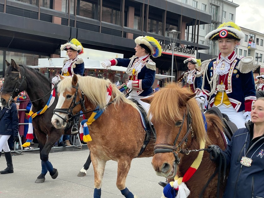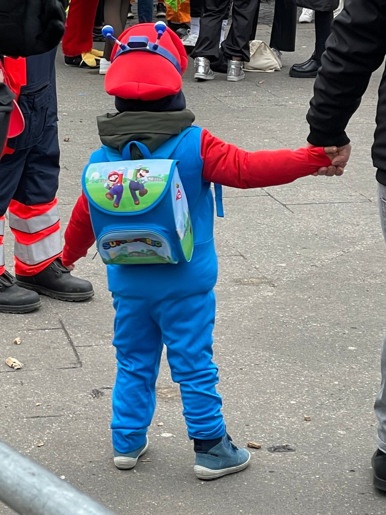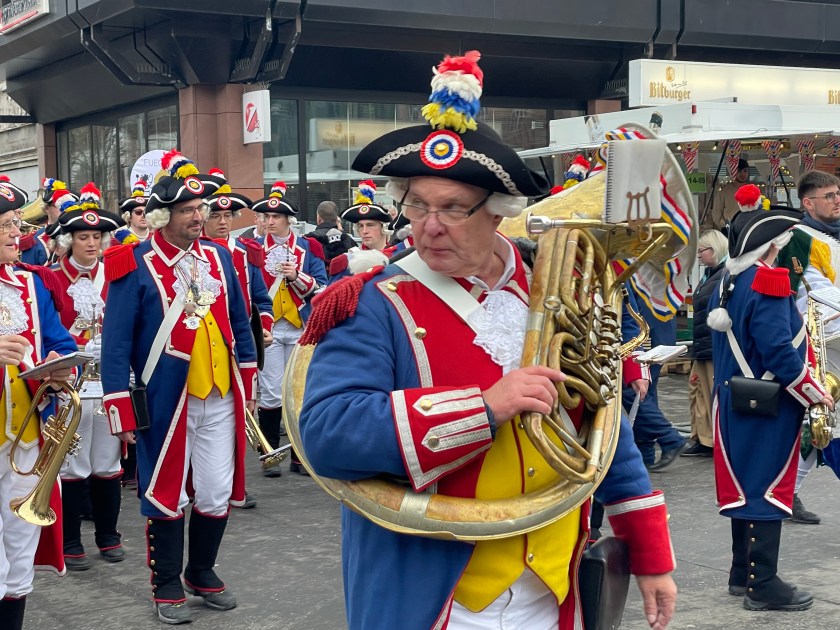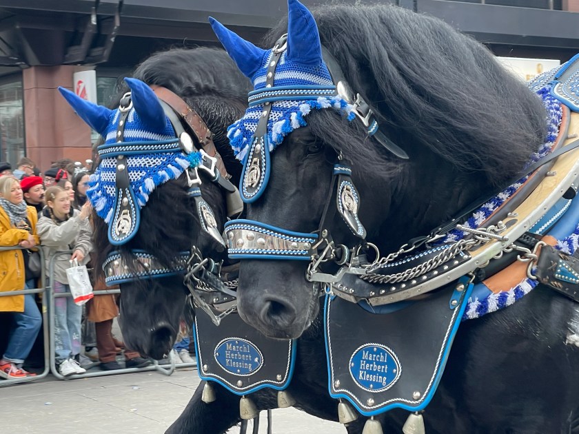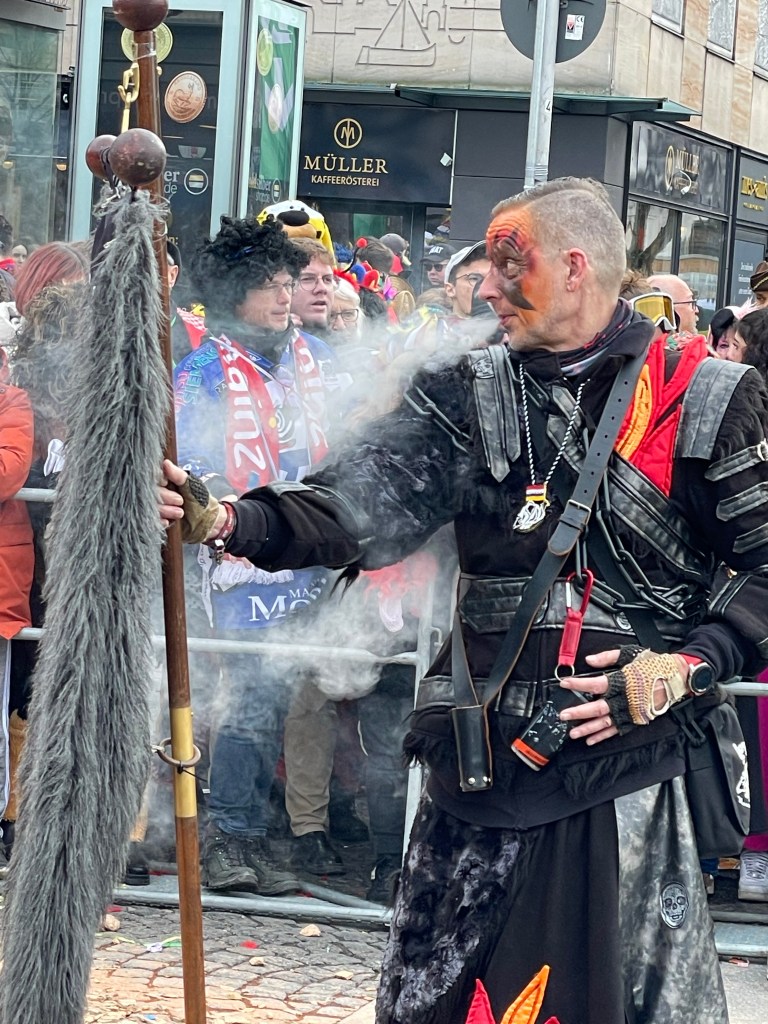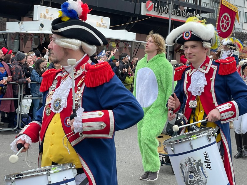 The actual parade started just after noon. We quickly learned that there was only one word we’d need to use the rest of the day: “HELAU!” this is the traditional Karnival shout in Mainz. The people in the parade shouted it to us and we shouted it back. Maybe a thousand times.