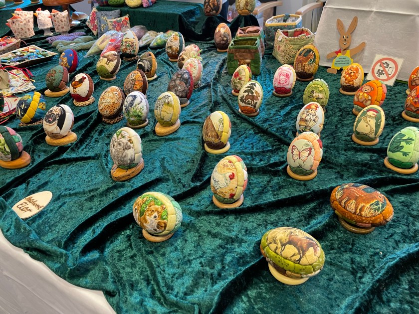 I had fun taking pics of the craft items. Most had to do with eggs and most were real eggs. And not just chicken eggs. There were duck eggs, goose eggs, pheasant and pigeon eggs, and even ostrich and emu eggs.
