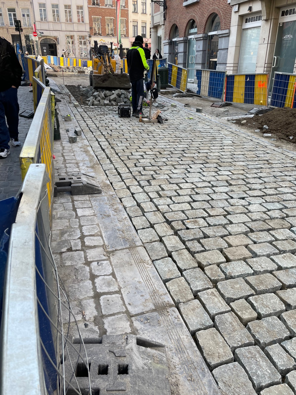 Belgium is preparing for a city-wide 200 year celebration in a few years. They are beautifying the city. It was interesting to see new cobblestone streets being laid down.