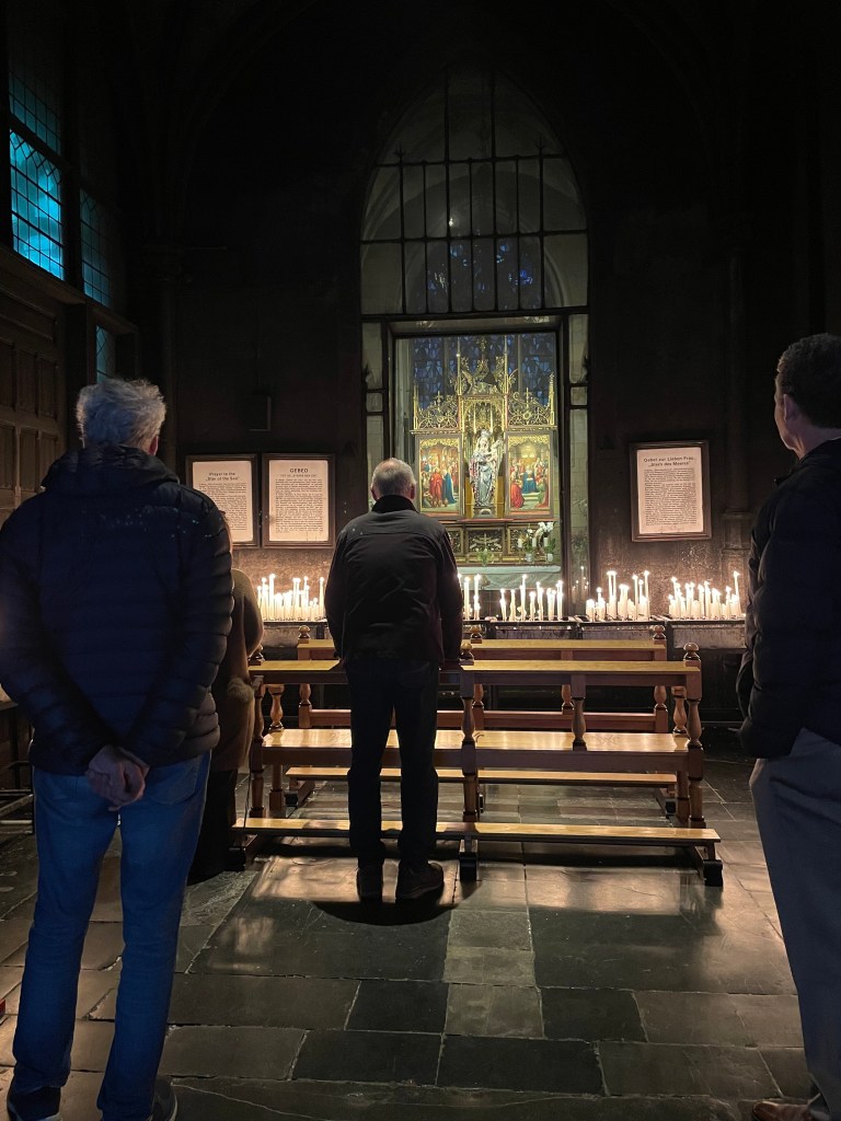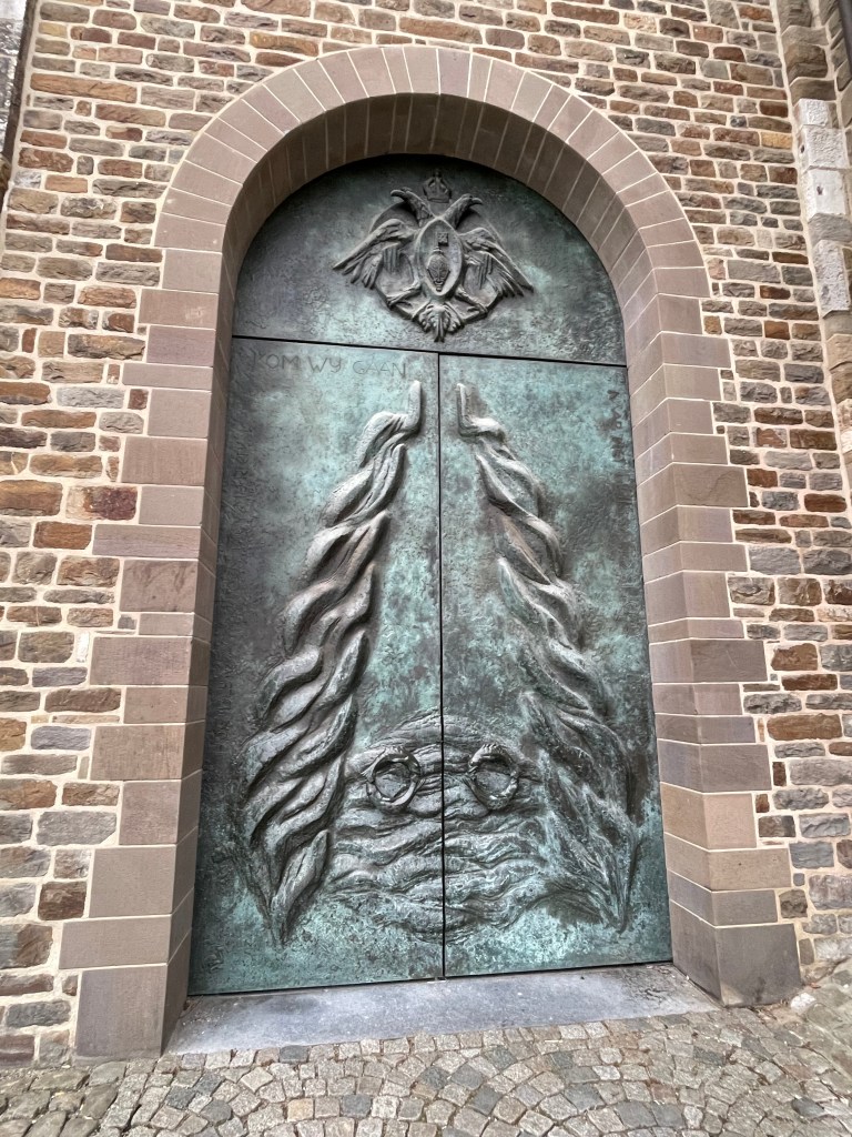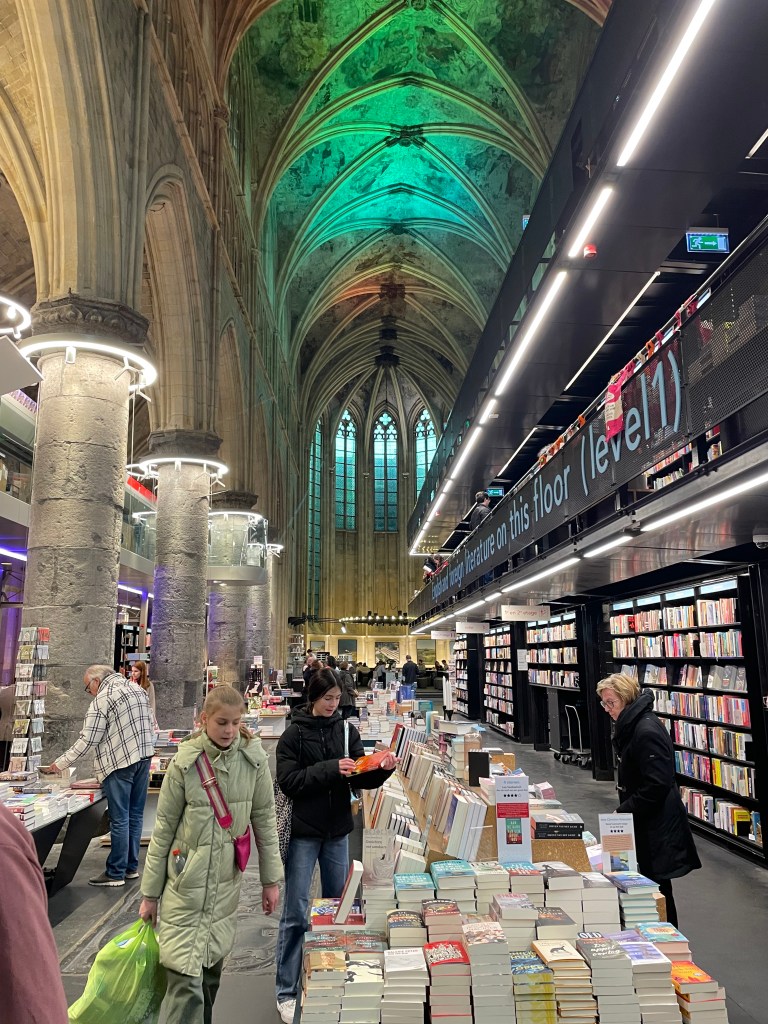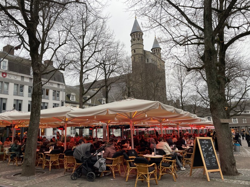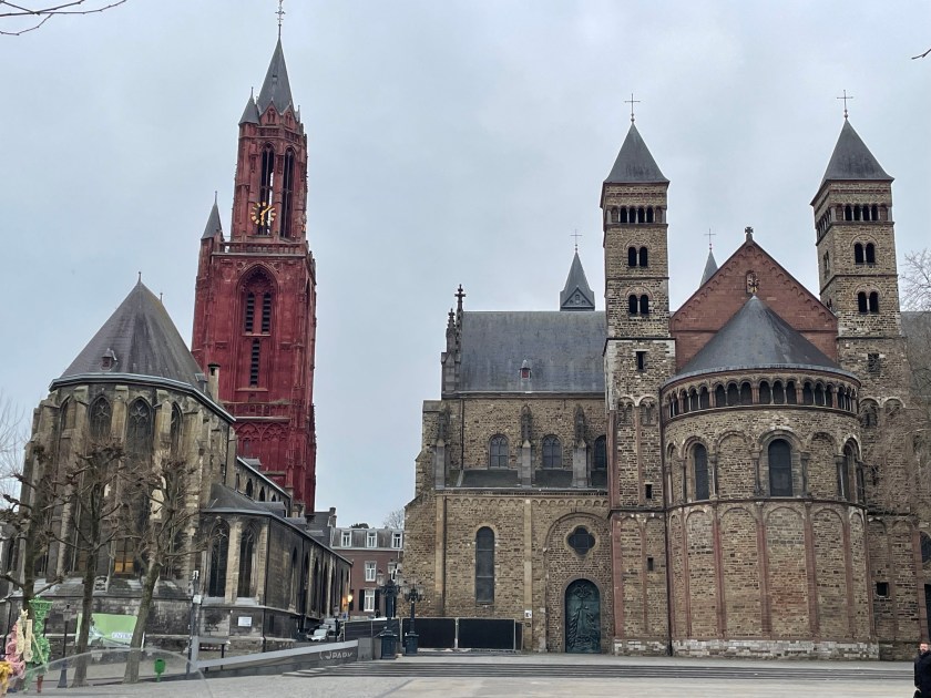On our way back to Frankfurt, we made one more stop, in Maastricht. We parked, then wandered to the old churches. The first one was closed–they’d just had a book fair there for several days and everyone was packing out. The next 2 churches were locked. Another one had been turned into a bookstore, or maybe it was more of the Book Fair going on there–the inside was gutted with a metal framed upstairs full of books. We didn’t get into a single cathedral/church. All have been repurposed into something else.