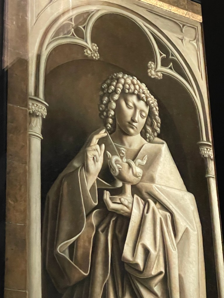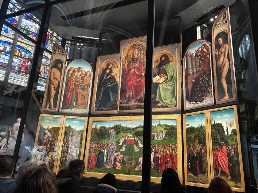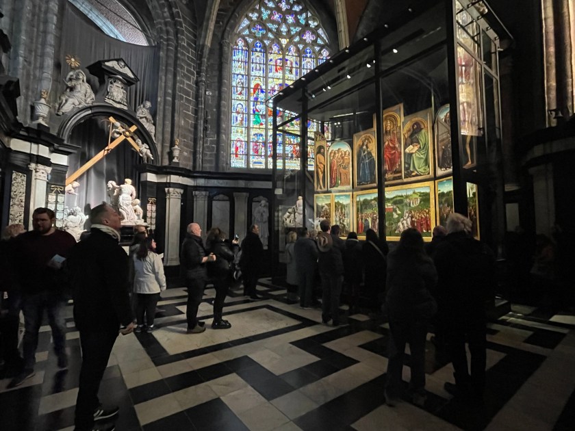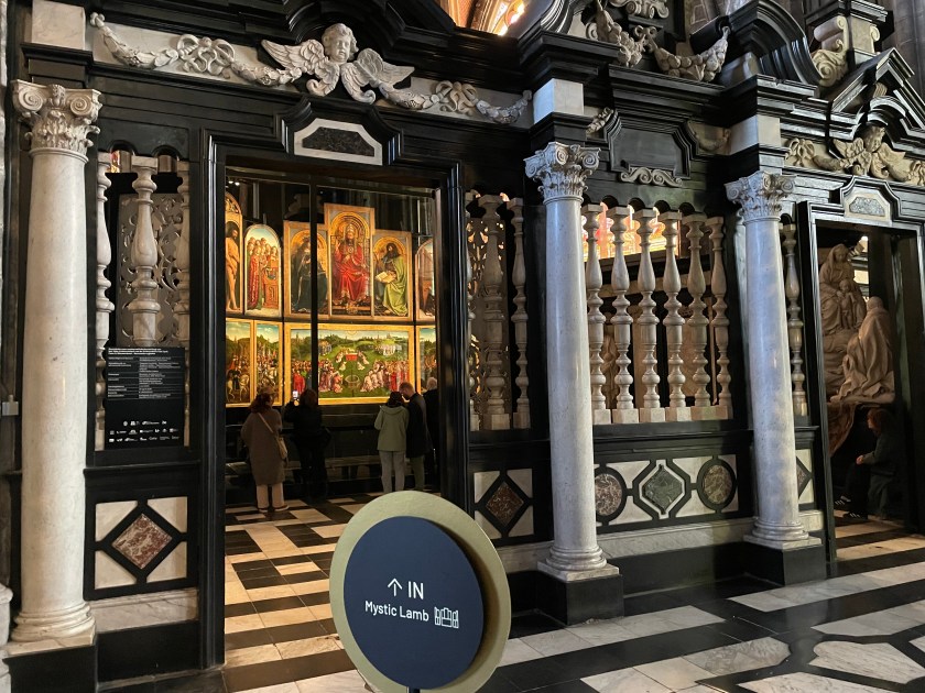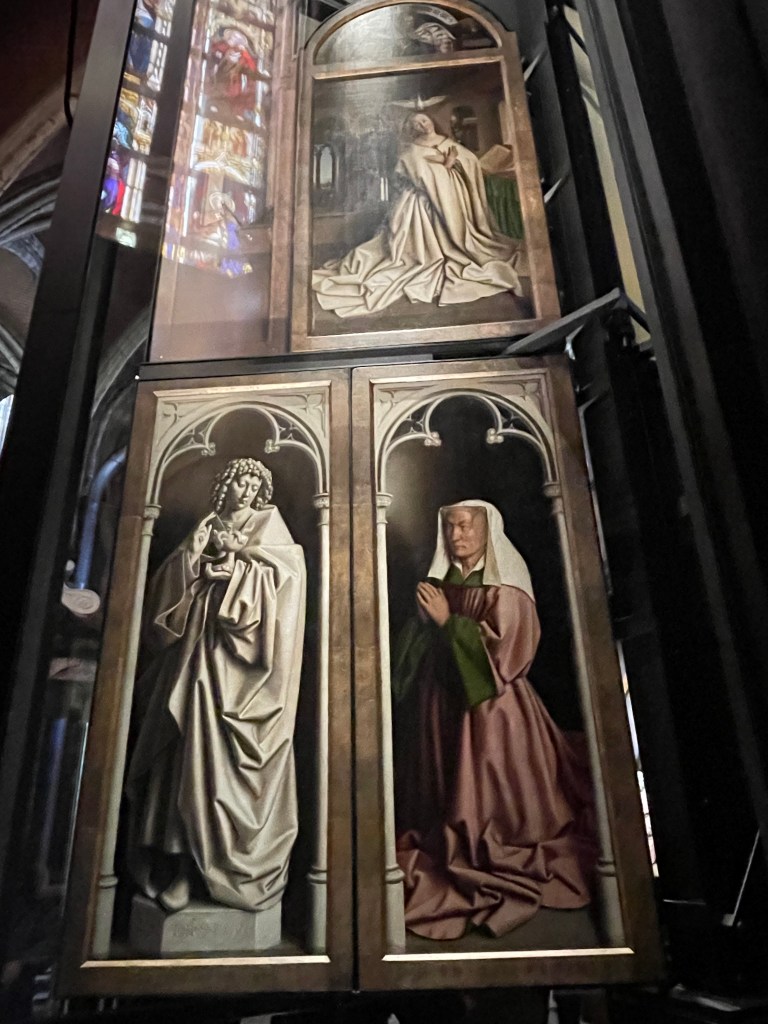 Inside the Bavo Cathedral, for an extra fee, you can enter a special area that houses the famous Altarpiece and other incredible works of art. This was our reason for visiting Ghent.