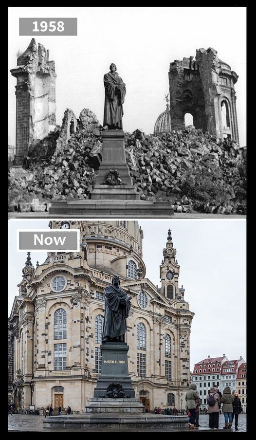 In 1993, the clearing of the rubble began and in 1994 the reconstruction was started. The work, completed in 2005, was largely financed by donors from all over the world. On 30 October 2005, a consecration service and ceremony took place in the Frauenkirche. The memorial against war and violence has now become a beautiful symbol of reconciliation.