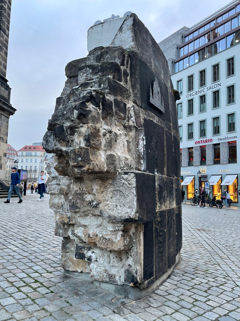The Frauenkirche is the gem of this old city. Originally built 1726 to 1743, it was destroyed during the air raids on Dresden on the night of 13/14 February 1945. It collapsed, burnt out, on the morning of February 15th. The rubble was left for many years as a memorial against war and destruction.