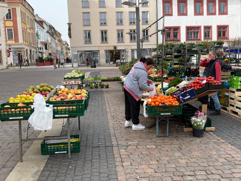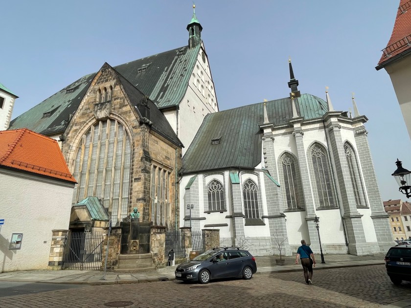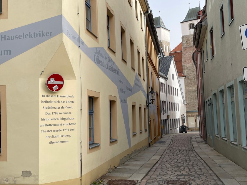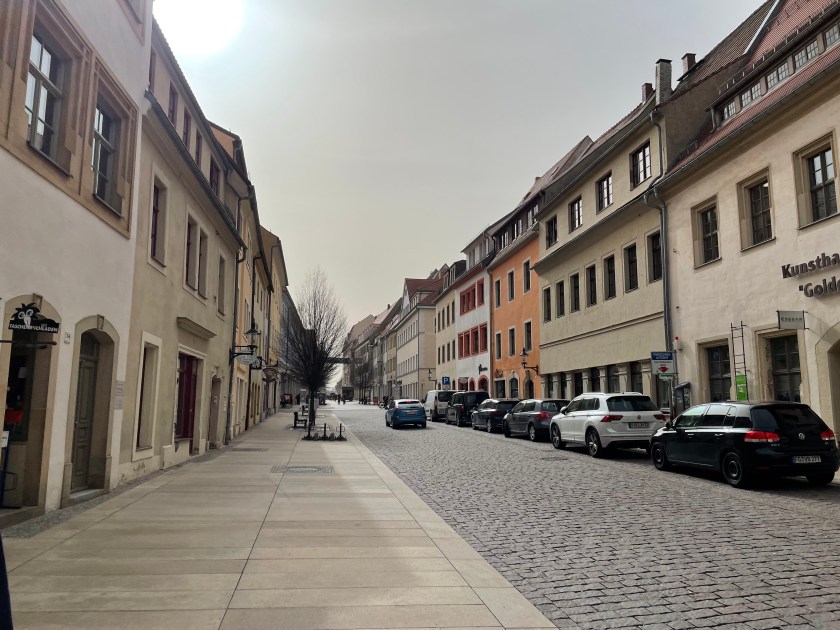 We spent a little time this Easter Saturday wandering around the old part of Freiberg–you can see the old part of the city on the map above. The old town felt deserted, shops were closed, people were inside. It was quiet.
