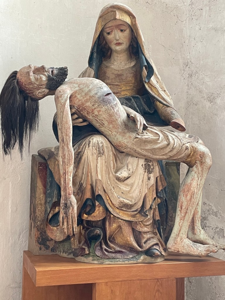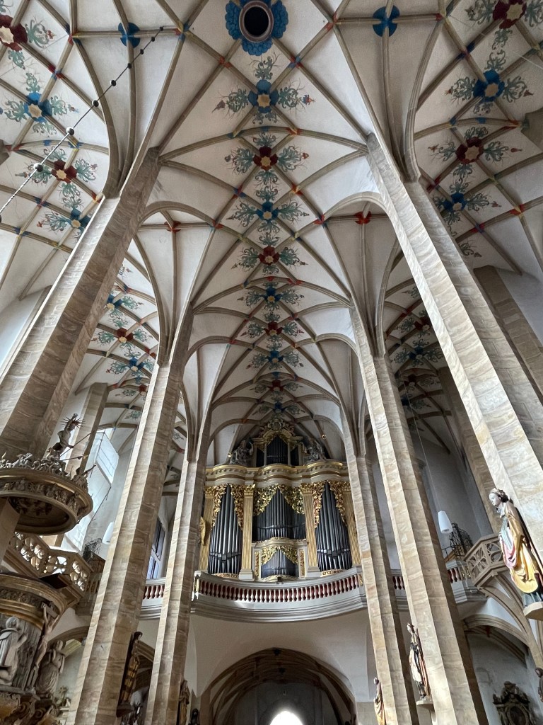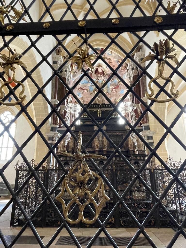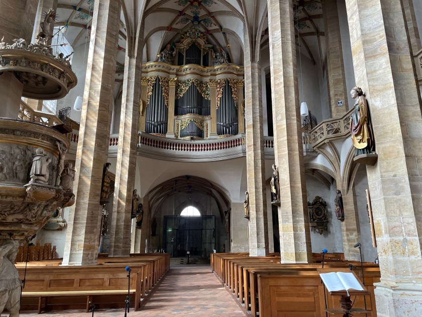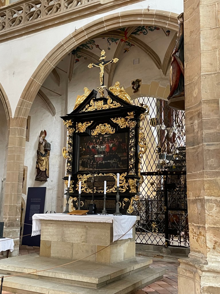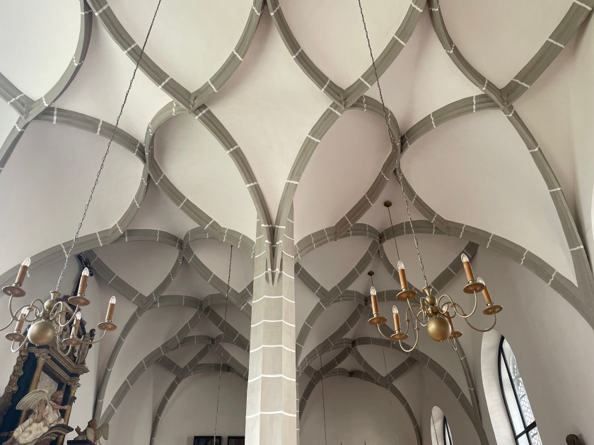 Then our kind and enthusiastic guide took us around the back where he unlocked the door to another small chapel. He told us this is the place where worship services are held now, because the large Dom is too hard to heat. He said if they turn the heat on on Wednesday, by Sunday it will only be 3 degrees warmer, and that’s too cold for people to sit through in the winter months.