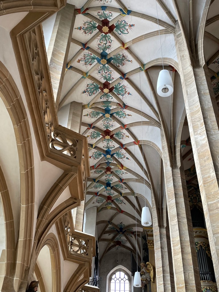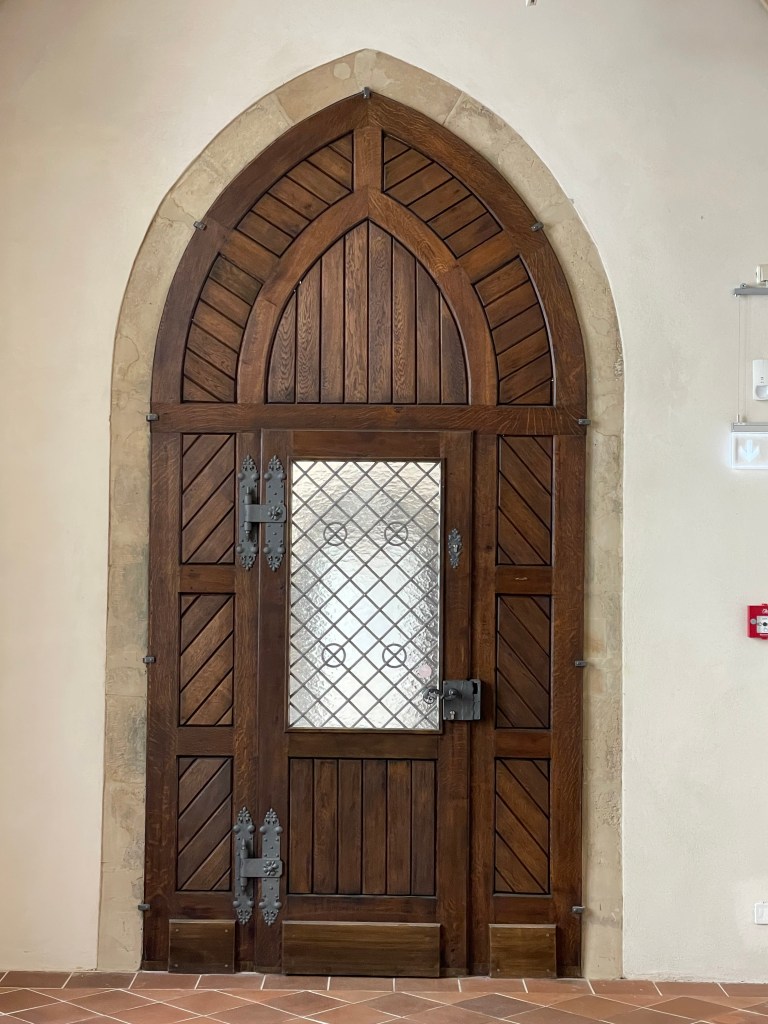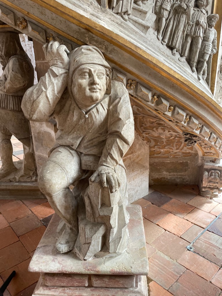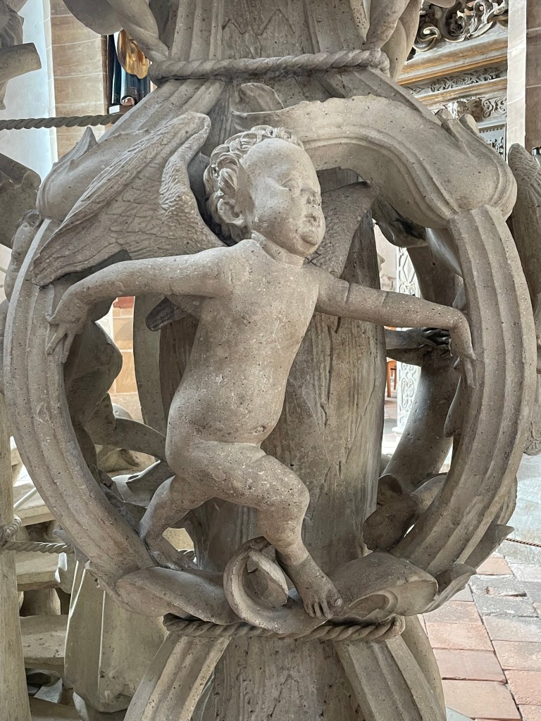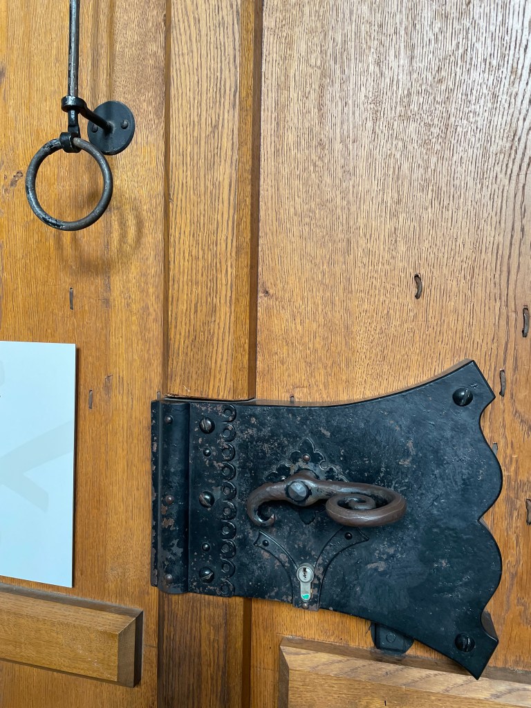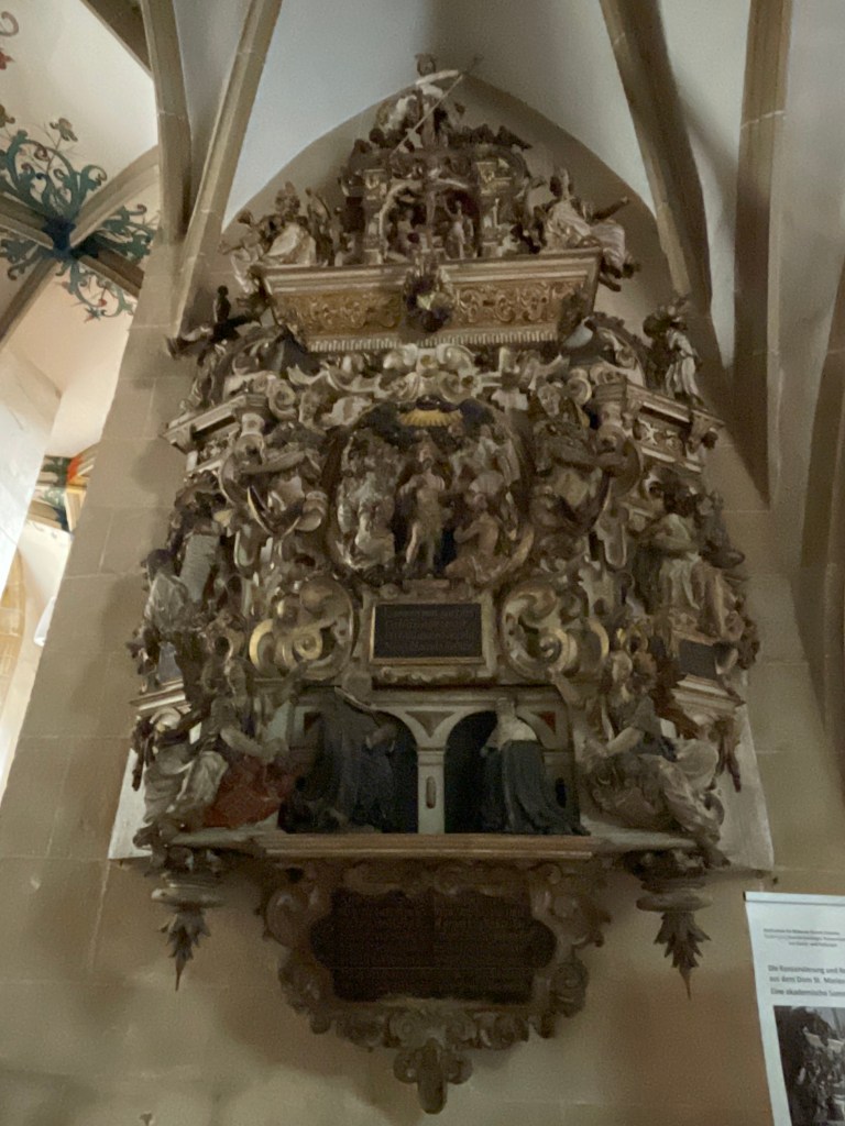 Then our kind and enthusiastic guide took us around the back where he unlocked the door to another small chapel. He told us this is the place where worship services are held now, because the large Dom is too hard to heat. He said if they turn the heat on on Wednesday, by Sunday it will only be 3 degrees warmer, and that’s too cold for people to sit through in the winter months.