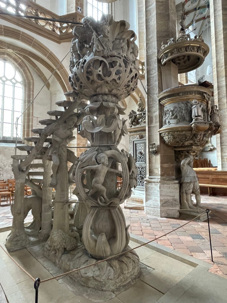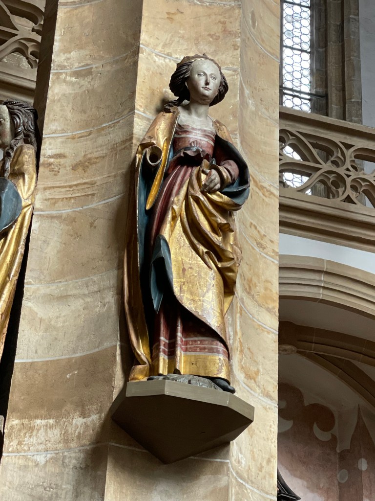 One interesting thing inside was statuary of the 12 virgins lining the pillars along the center aisle of the church. On one side, the light from the windows came through and shone on them. They were happy. They were prepared with oil in their lamps. On the other side, they were in the shade, sad, unprepared, with empty lamps. Be like the happy virgins.