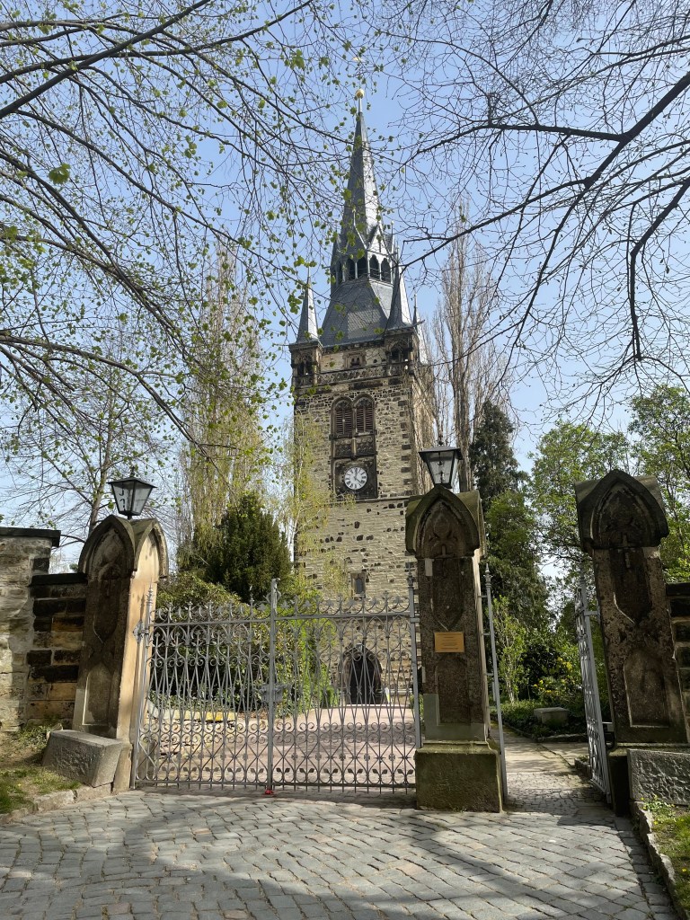 As we drove out of Dresden, we found this old church, built in 1273, no longer in use. It’s been preserved as a memorial and as a place for contemplation. There is a cemetery in the churchyard. It was beautiful.