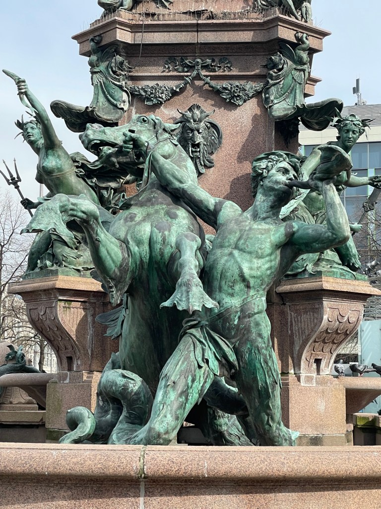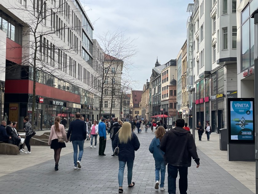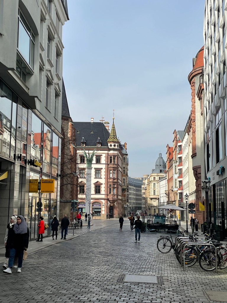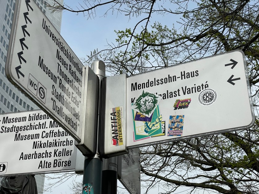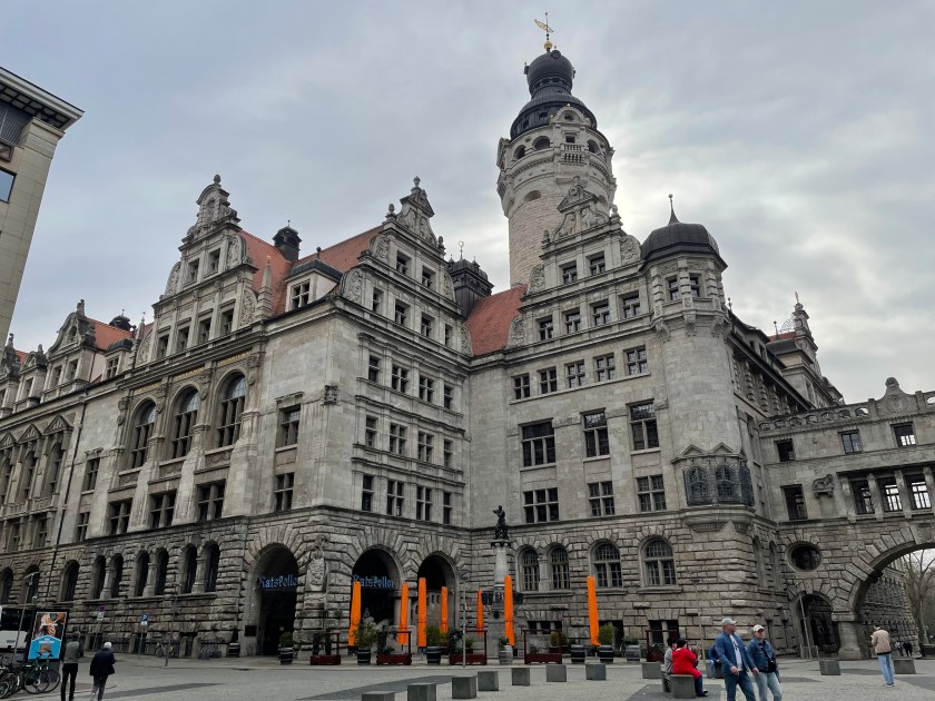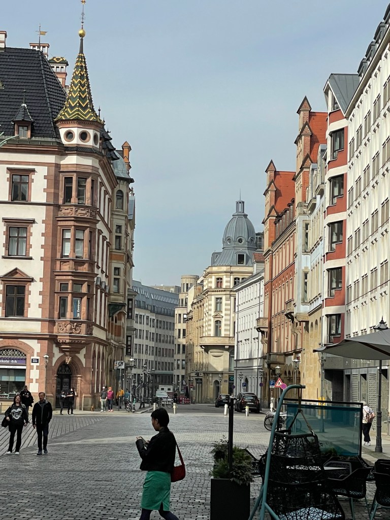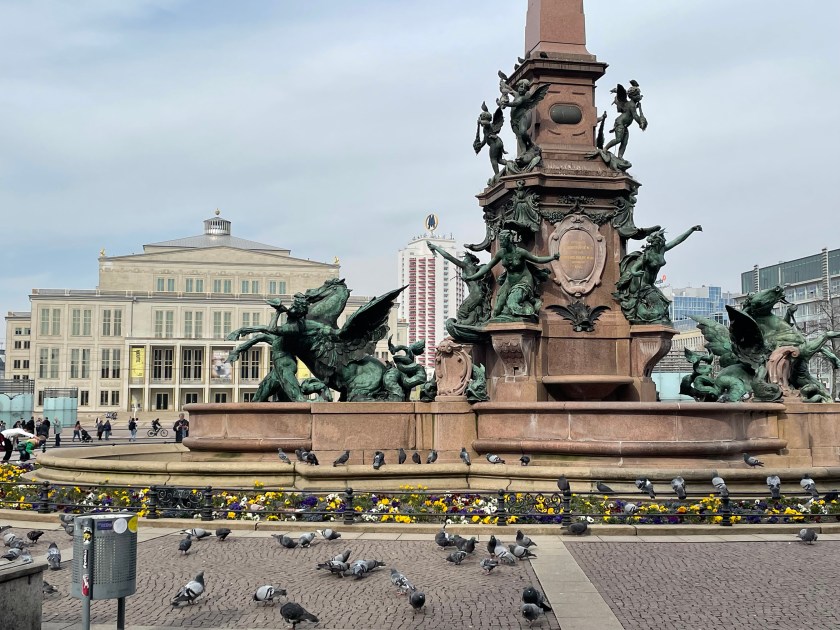 On this Easter Sunday, after church we drove from Dresden to Leipzig, about 45 minutes away. We checked in to our hotel, then went out exploring. We had a map of the older part of town, now mixed with new. Leipzig is bigger than Dresden, with about 700,000 people. We spent the afternoon wandering and feeling this city where many composers once lived and performed.