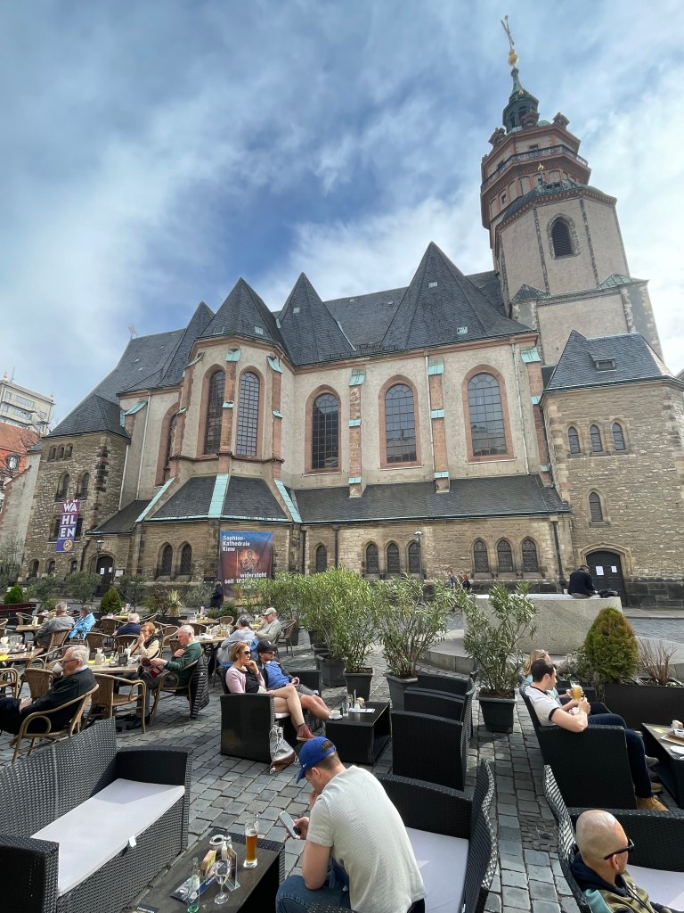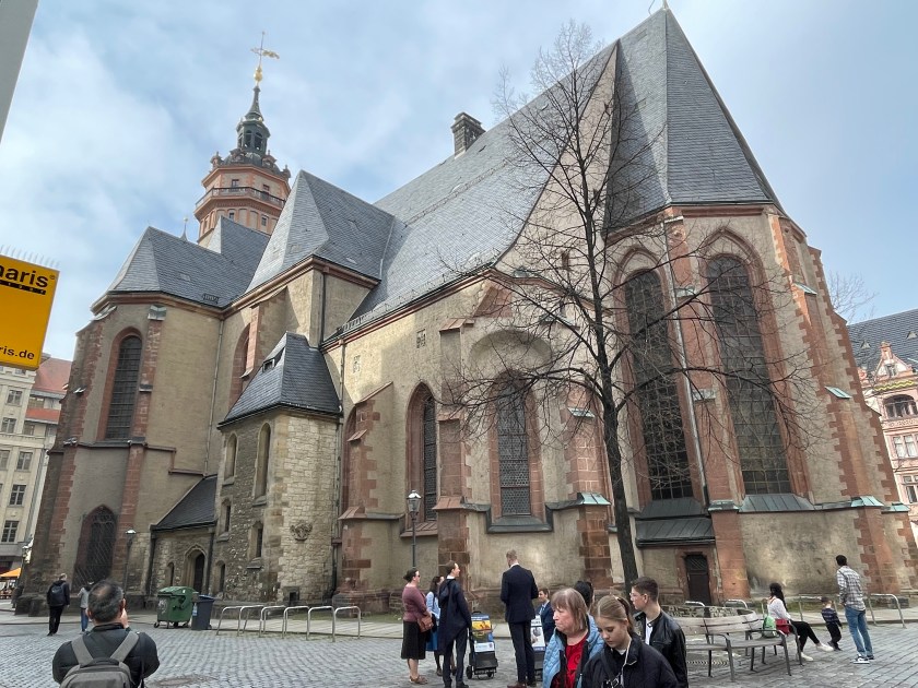 Here is the St. Thomas Kirche where Johann Sebastian Bach and his family worshipped and where he performed. I’ll take you inside in the next post. It was probably the highlight of Leipzig for us.