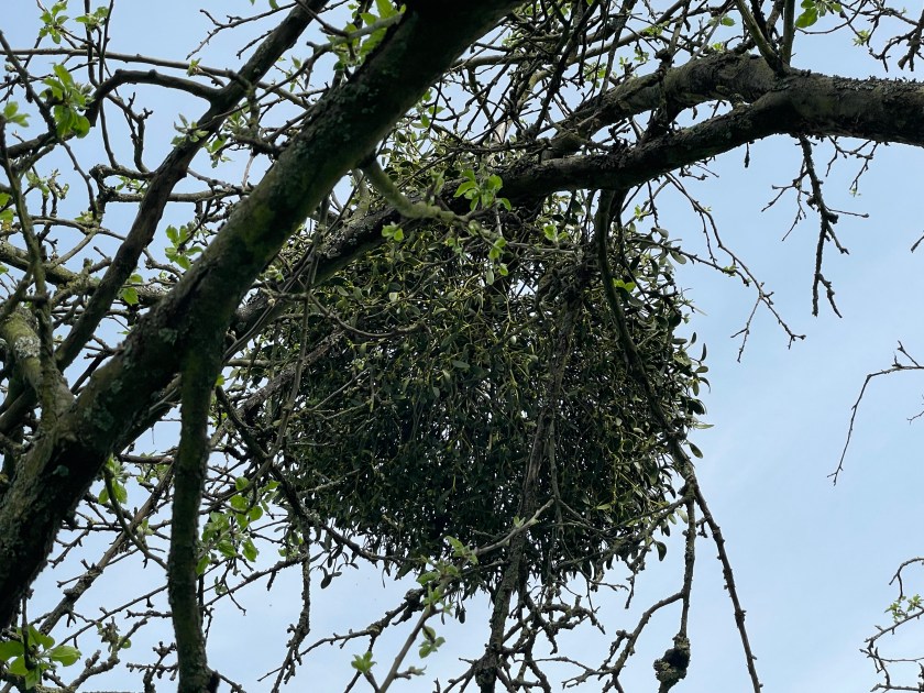 Clumps of mistletoe like this are seen all over Germany, growing in the trees above us.