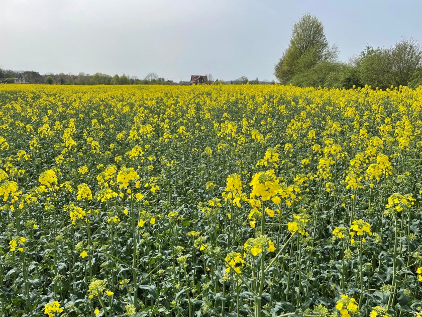 One of our work associates told us about a beautiful place to take a drive to see orchards of apple blossoms. On this Saturday afternoon while waiting for General Conference to start here in Germany, we and the Feinauers decided to take the drive to Ockstadt. Things are finally getting warmer here. On the way, we drove by so many golden fields of Rape Seed. The seeds are harvested to make oil. The fields are just beginning to bloom. Soon they will be nothing but yellow.