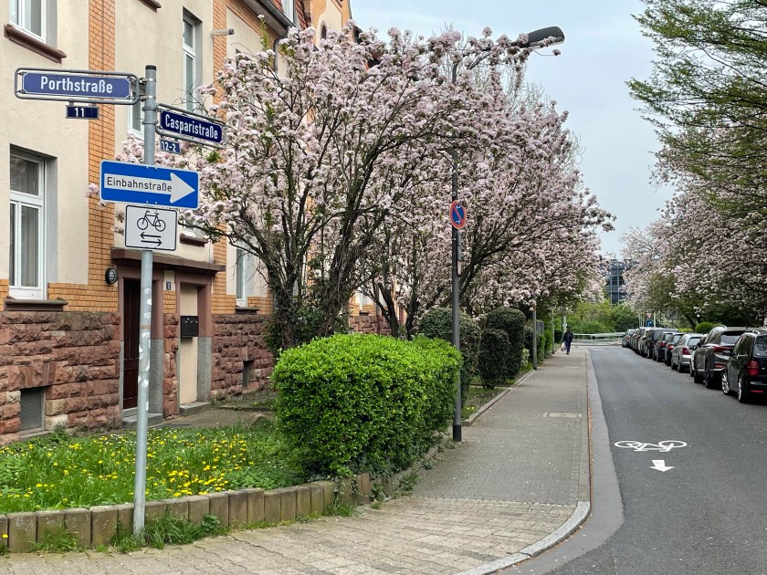 Here’s a look at the blossoms on our Portstrasse street when we got home.