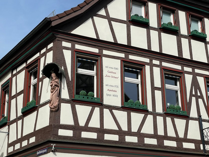 After visiting the Snow White Castle in Lohr am Main, we spent an hour or so just walking through the town. It was delightful. These little towns were not spared during the war. You can read here what the damage in Lohr a. Main was. It’s hard to imagine the destruction of such beautiful buildings.