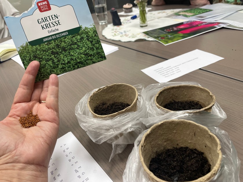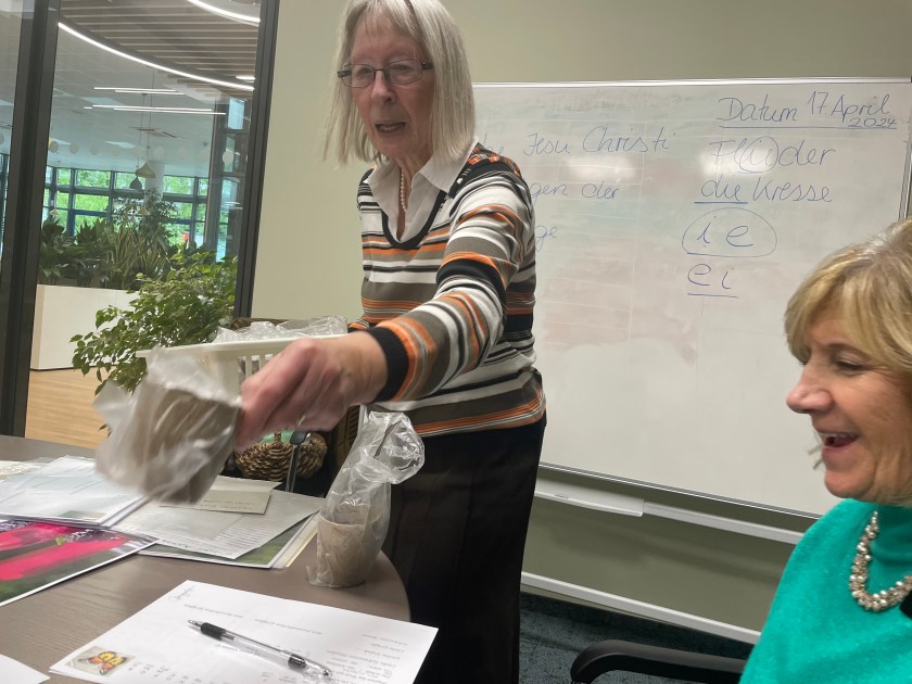 In a week I’ll be traveling home to meet Caleb, and while I’m gone Sis Enger will be teaching everyone how to use the herbs we planted today to make green sauce, served here in Frankfurt over boiled eggs and potatoes.