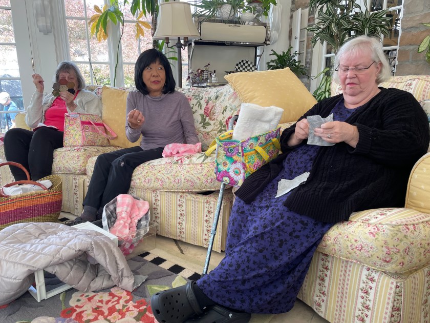 It was another huge surprise for these dear friends when I walked into the room today. This is my Orem weekly quilt group with some of my favorite friends. My chair was waiting and our conversations picked up where they left off 9 months ago. It was heavenly. I miss these friends, but time is flying and soon I’ll be back with them. It’s strange to be here, knowing this is not my place right now.