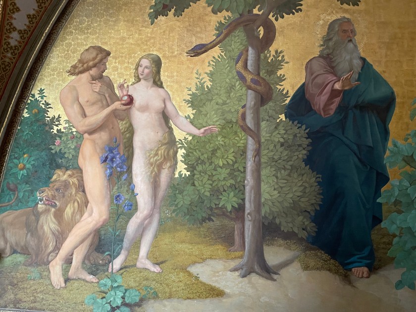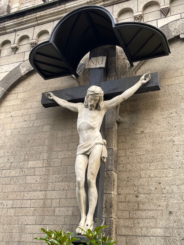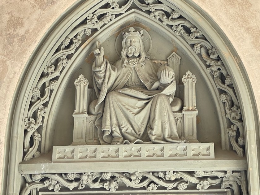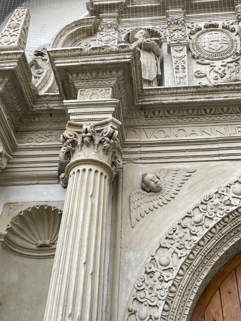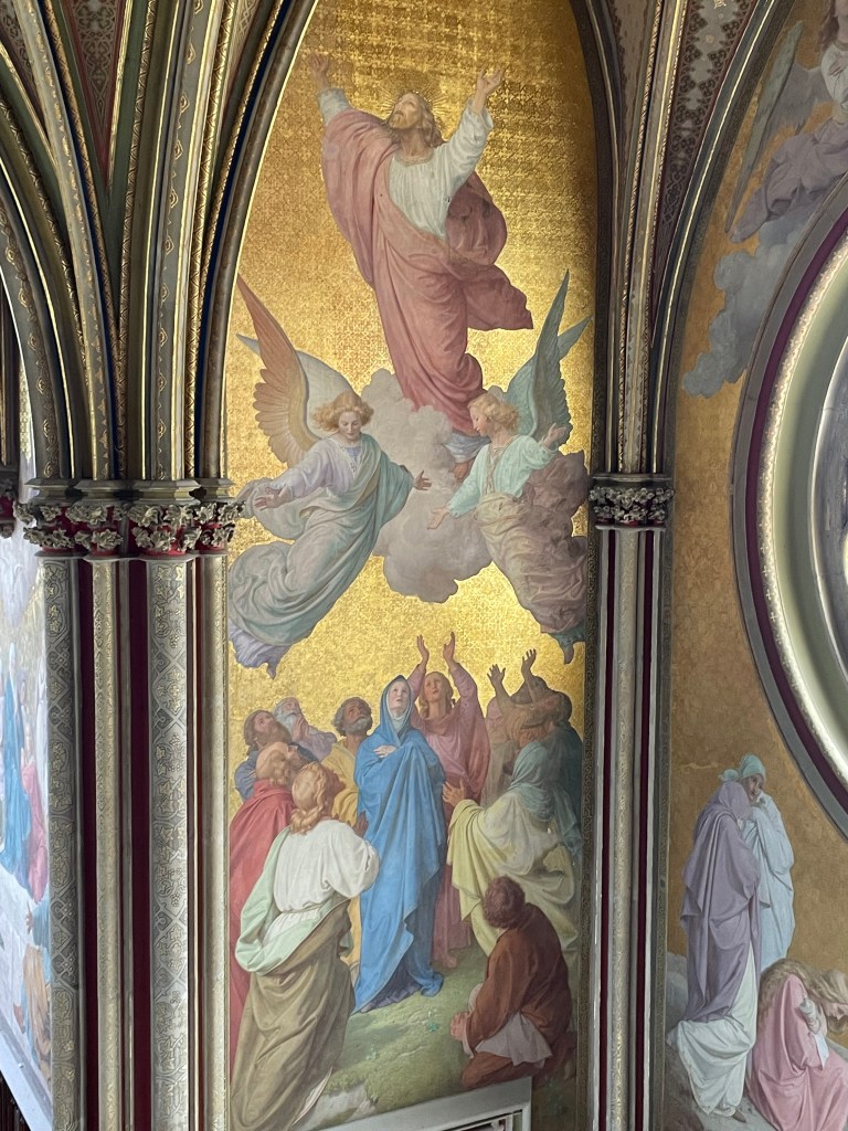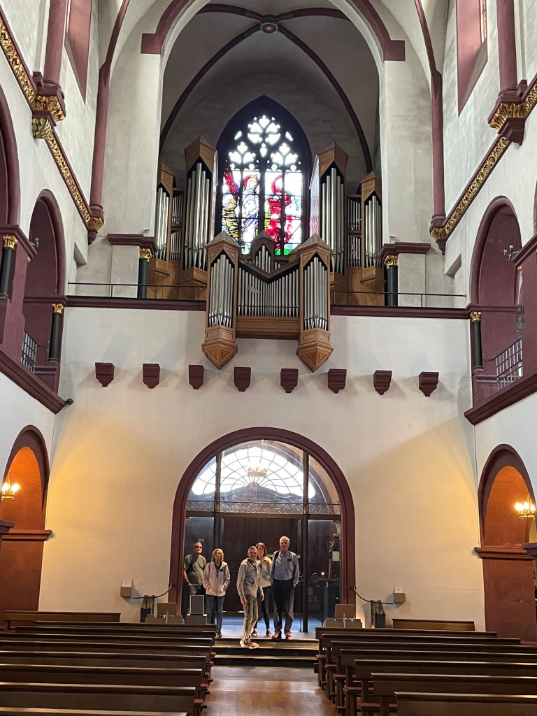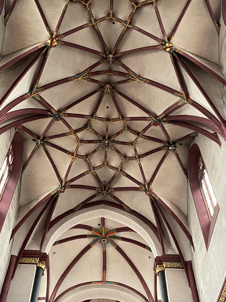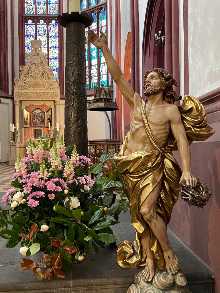 Here’s the history of this church–First built about 1180, added to in the 14oos, the baroque towers were added in 1693, badly damaged during the war in 1944, rebuilt by 1957, new choir windows in 1992, interior restoration in 2000.