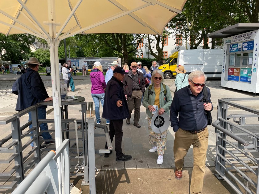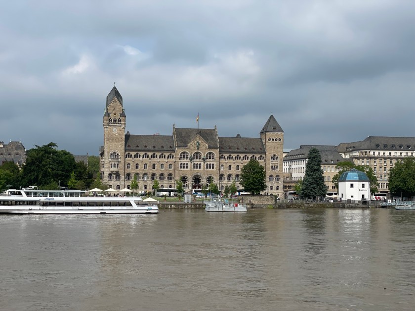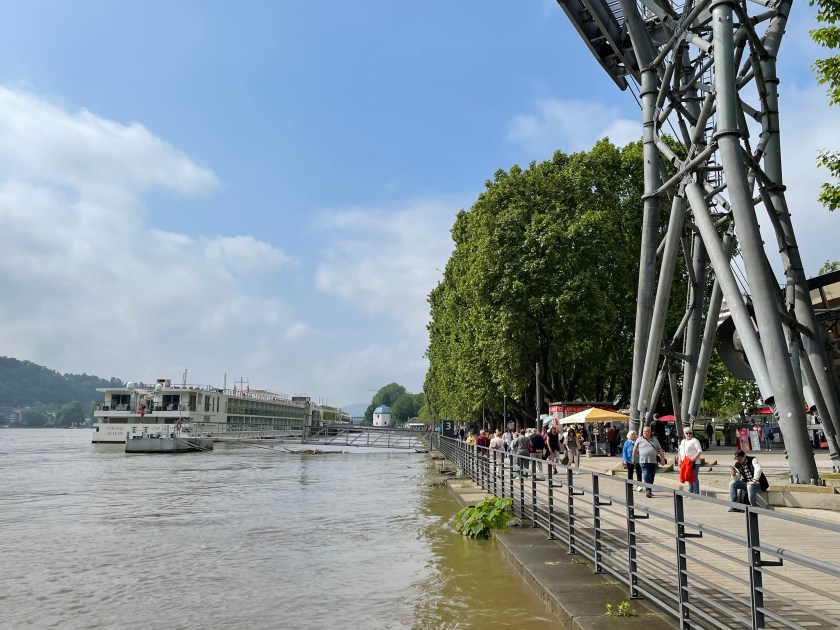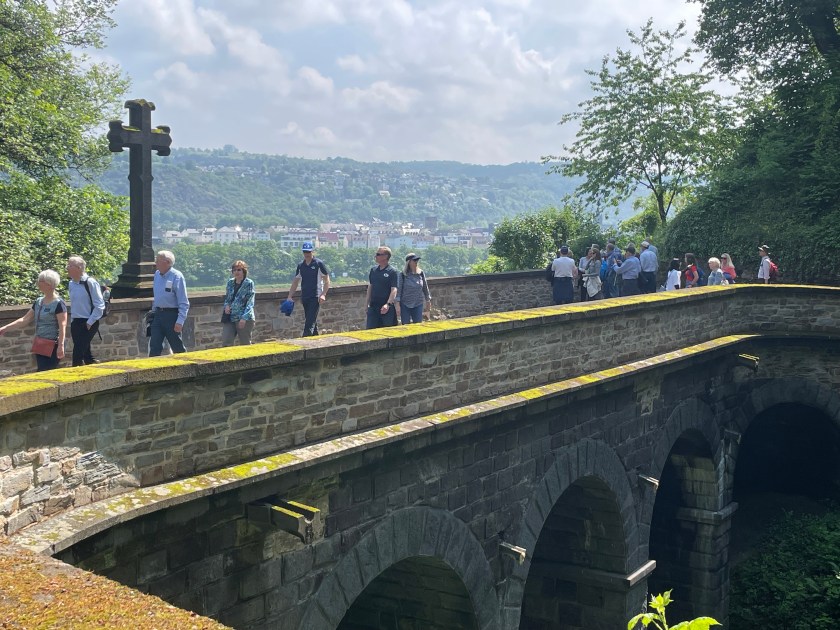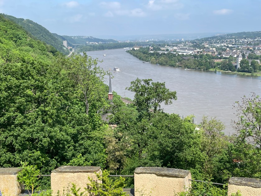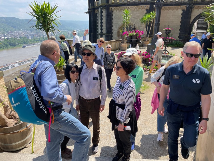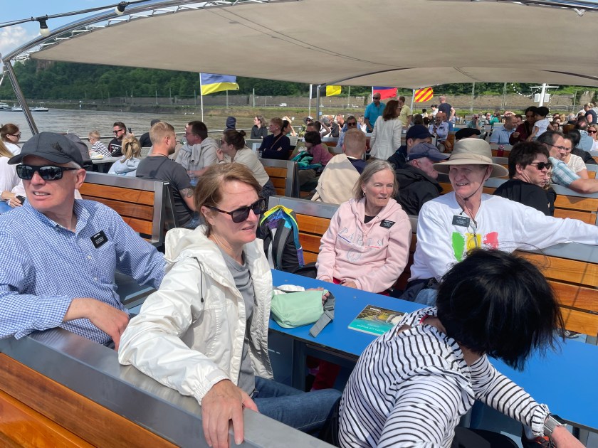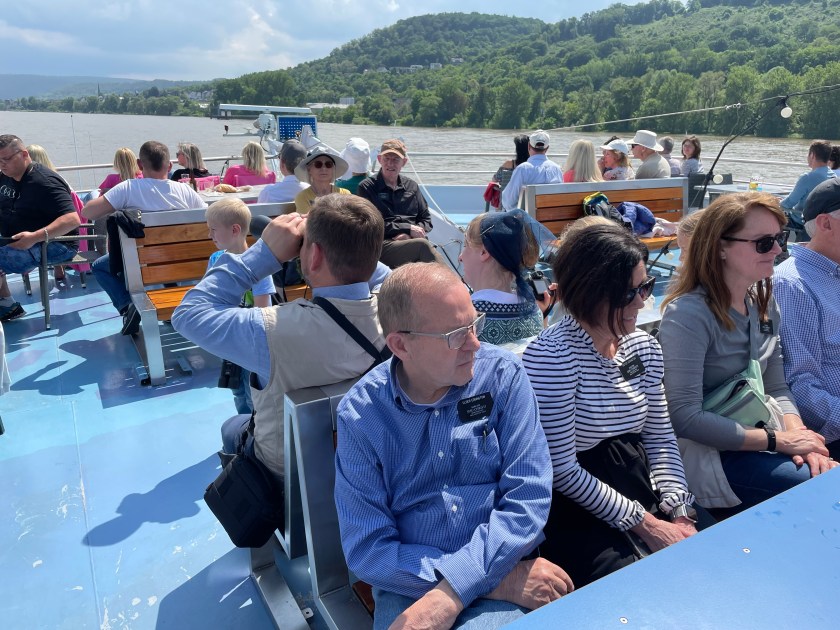 Today was a public holiday in Germany–Ascension Day, commemorating Christ’s return to heaven. We planned a Zone Activity today (Monday) since the office was closed. Our outing took us to Koblenz, a couple of hours away in the Rhine River Valley. We carpooled and took 3 vans to get everyone to a riverboat pier Koblenz by 10:30.
