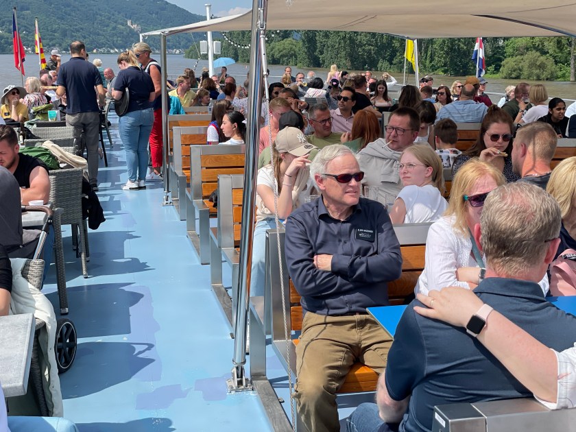 There are dozens of river boat cruises going and coming up and down the Rhine. They stop at interesting sites and castles for the visitors to get off, then at a certain time we were to meet back again to take the boat back to Koblenz.