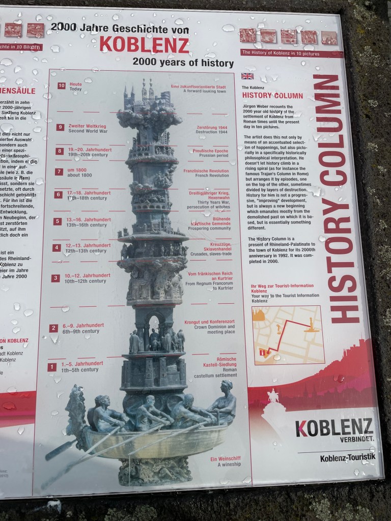 We got there about 30 minutes early, so we had time to look around a bit. This History Column greeted us as we came up out of the car park. It’s a really interesting depiction of 2000 years in Koblenz.
