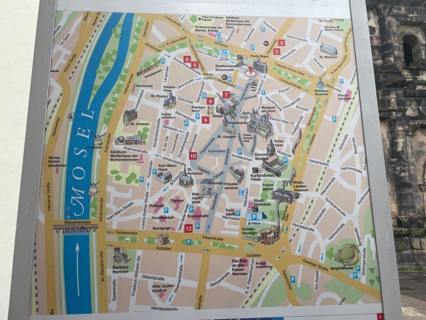 This morning we went first to the Tourist Information place to buy ticket passes to all of the main sights in Trier. We got punch cards that were good for a year for 18 Euro.