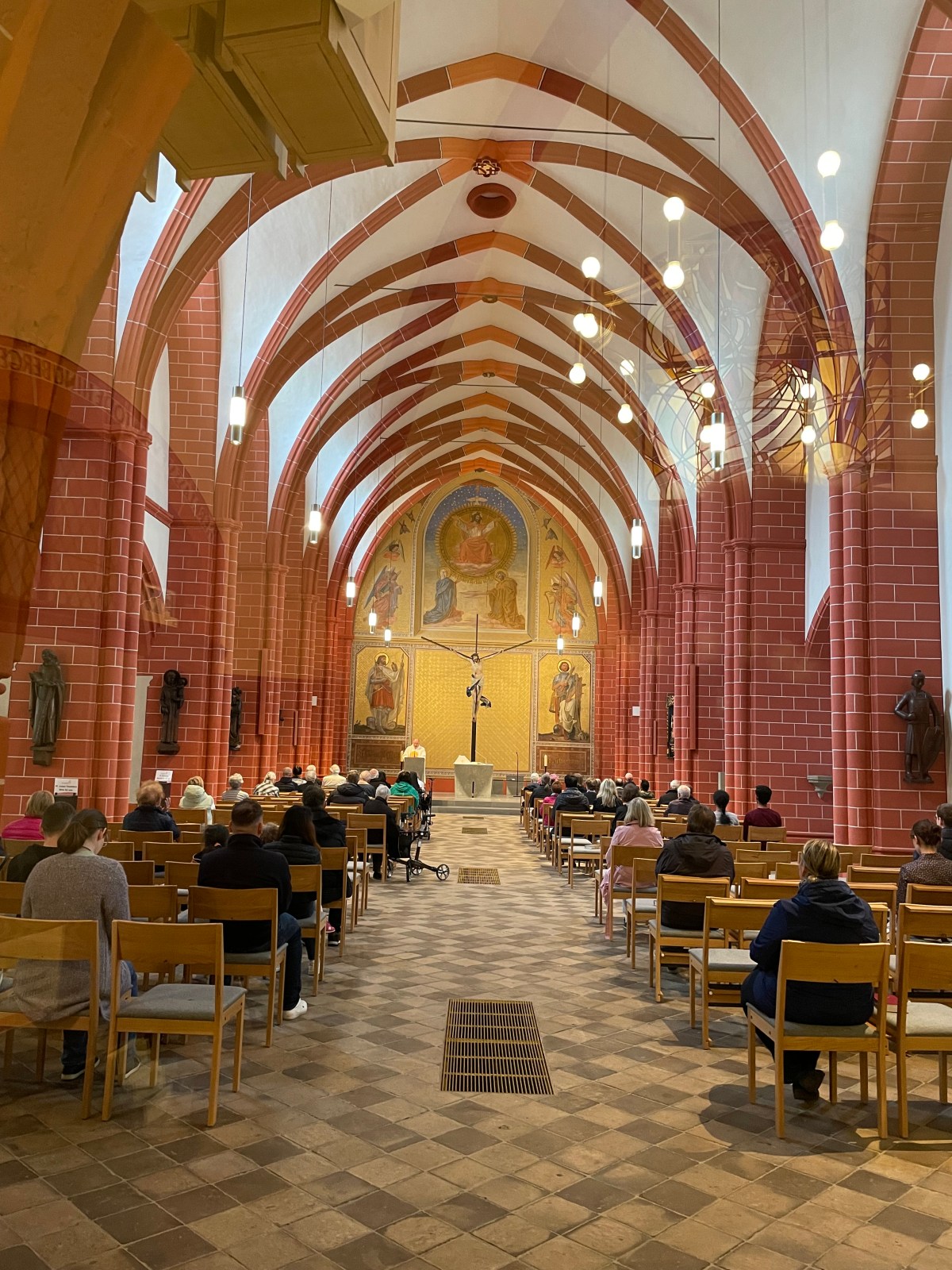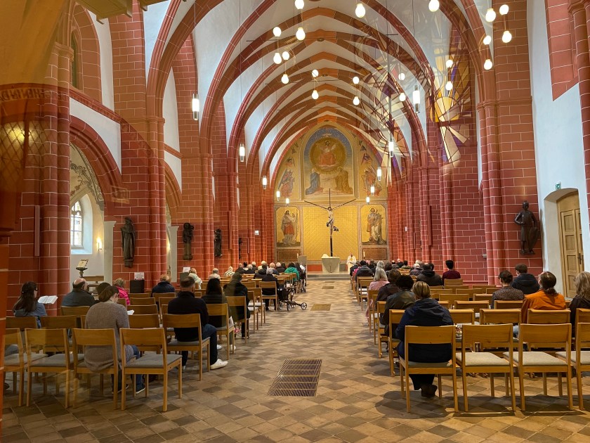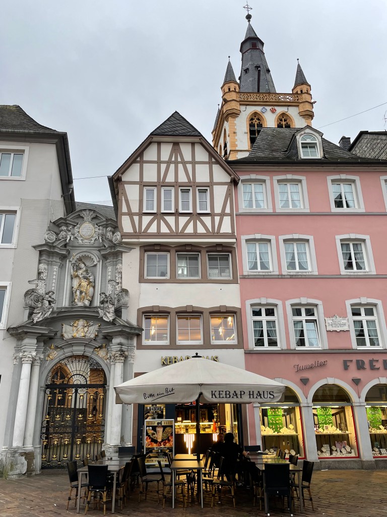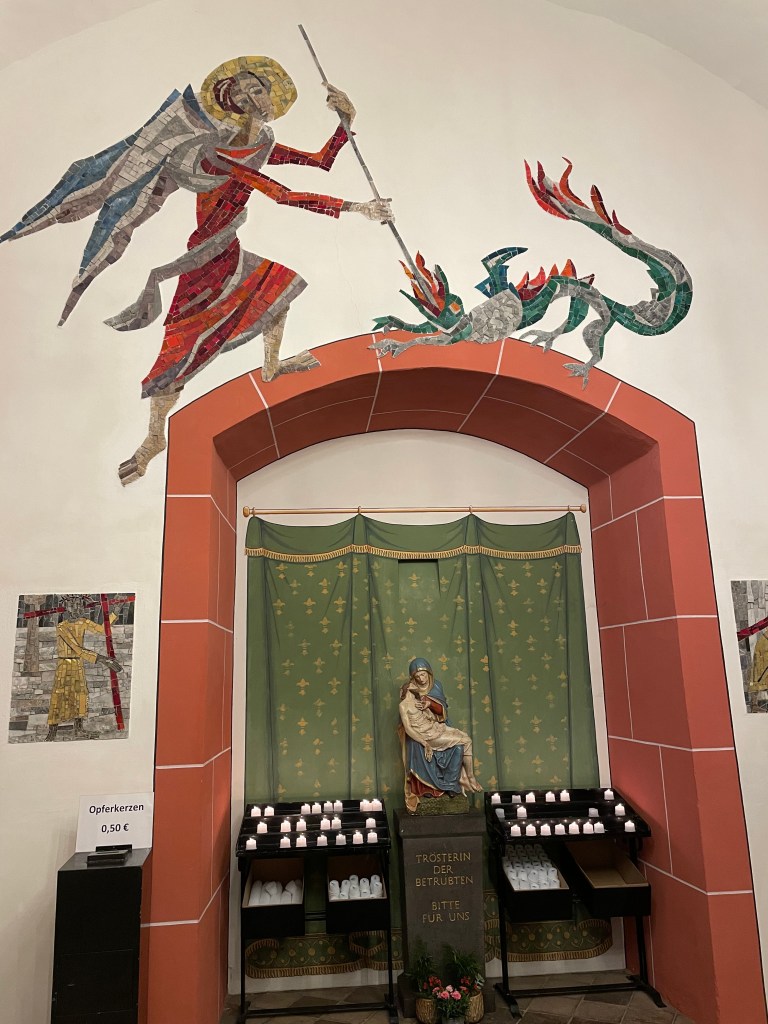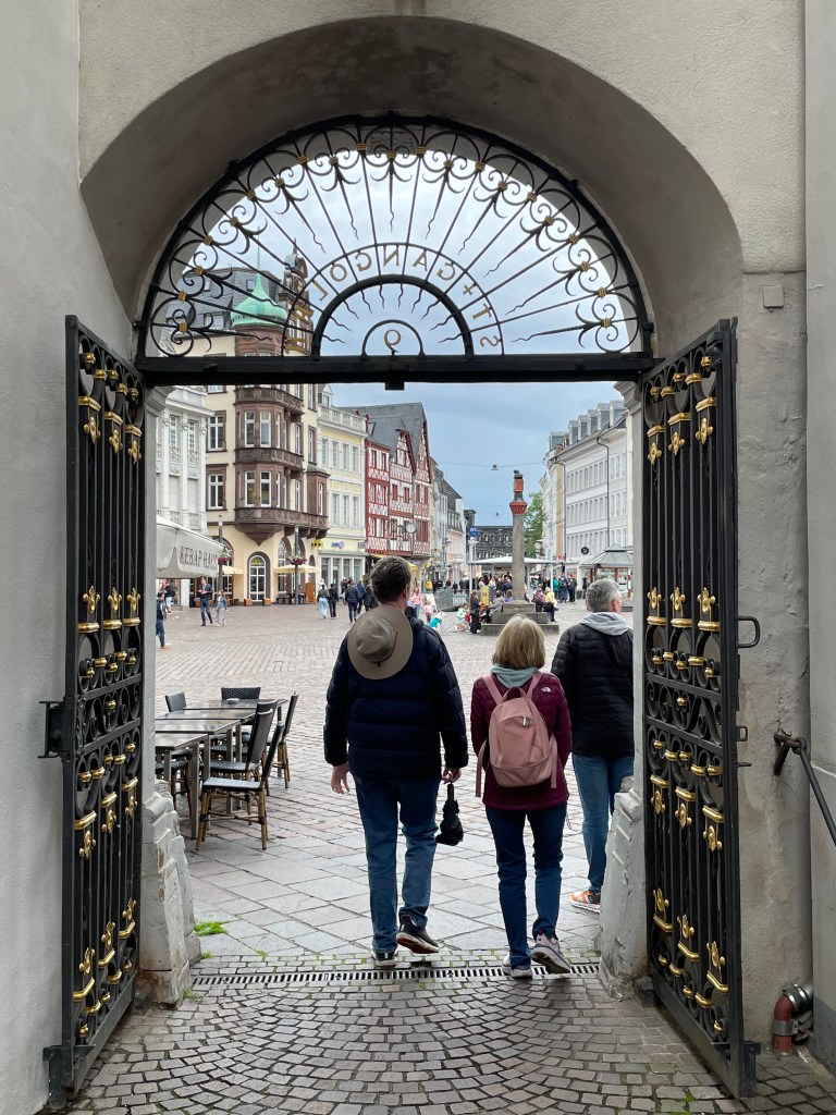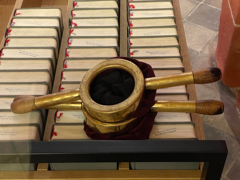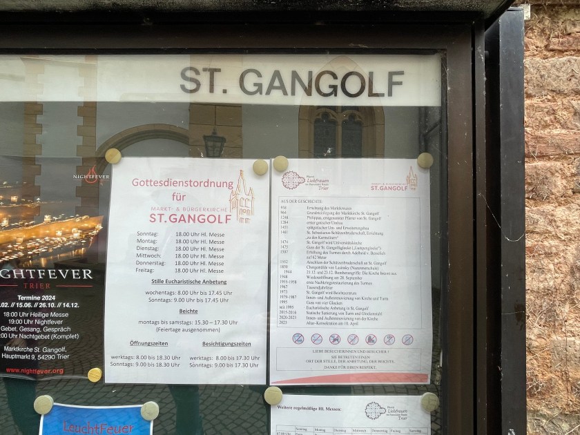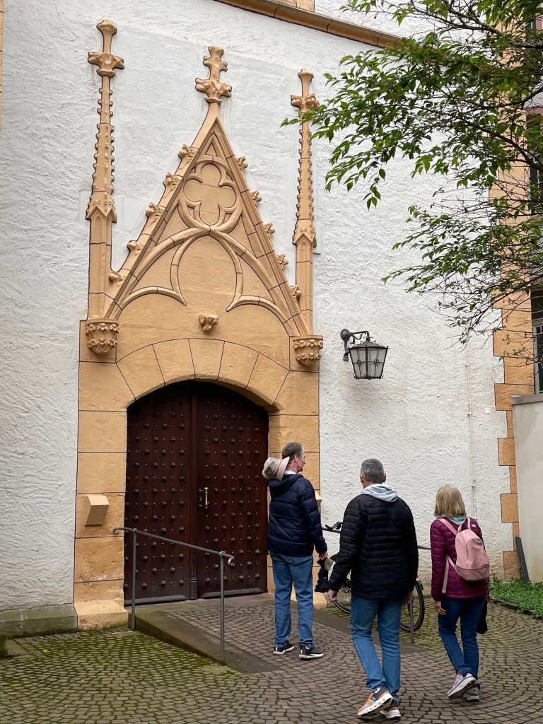 It took us a few walks around the block to figure out how to find the entrance to the St. Gangolf Church. It was behind other buildings, with no street entry. We finally asked and were directed to the gate “after the Kebab House.” Sure enough, that took us behind the buildings to the door of this beautiful church that was tucked away and poking out the top of the block.