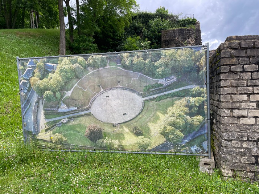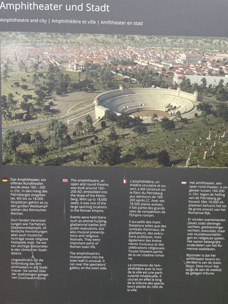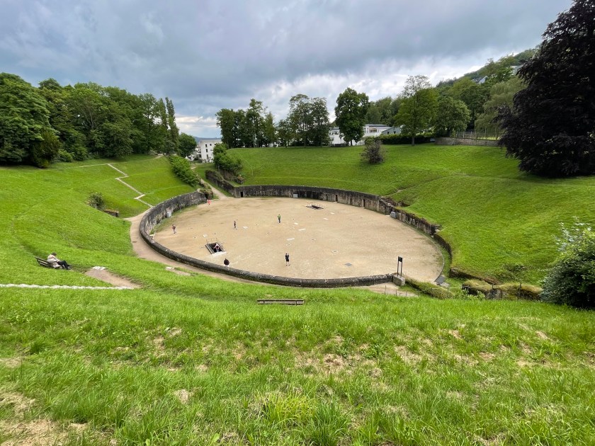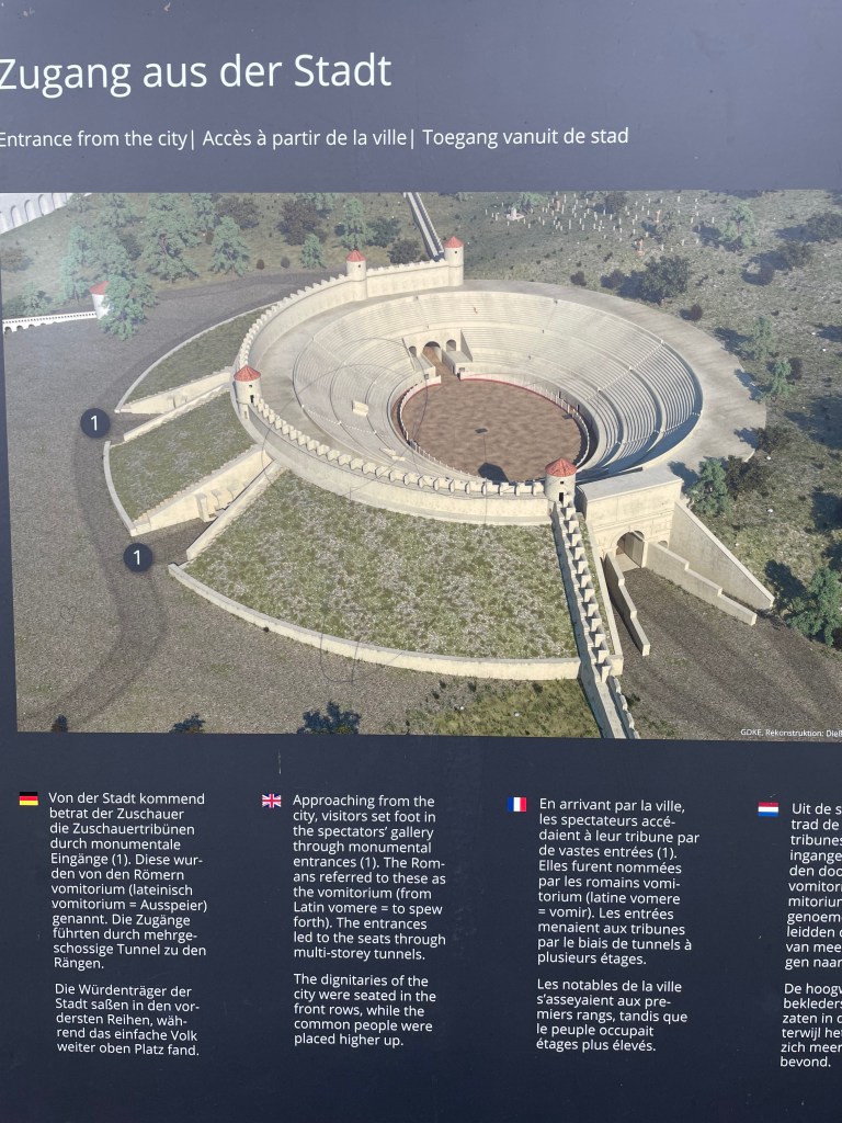 From the Imperial Palace gardens, we walked down under the road to the far side of the old Roman town to the amphitheater.