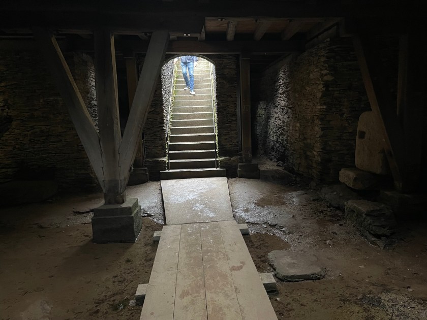 There are 2 places where steps lead down into the arena cellar (updated for tourists today). There’s a wooden lift platform down here that was used during shows for changing scenery or sending animals up. Because of the damp environment, the wooden remains have been preserved. The wood dates back to 300 A. D.
