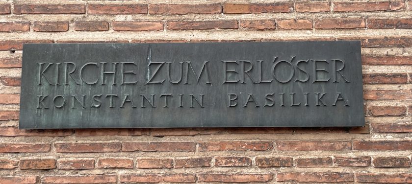 The Basilica of Constantine ( Evangelical Church of the Redeemer ) in the Rhineland-Palatinate city of Trier , the former Roman Augusta Treverorum , was originally a Roman palace hall . It was built as an audience hall for the Roman emperors who resided in the city in the 4th century. The name of the building after Constantine the Great as the Basilica of Constantine is a reminder of this time and purpose . The name of the building as a basilica was given by local historian Johannes Steiner in the 19th century, who took it from a late antique eulogy for the Emperor Constantine. From today’s perspective, it is inappropriate, as it does not correspond to the building type of a basilica , but rather to that of a hall church . The Catholic honorary title of basilica is also inappropriate, as the building was never a Catholic church.