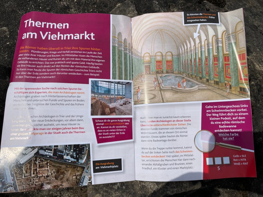Today the site of these baths is a huge archaeological excavation project. You can walk in and around the structures and read about what it was like long ago. Most of the excavation took place after WWII, when buildings on this site were destroyed and excavation was possible.