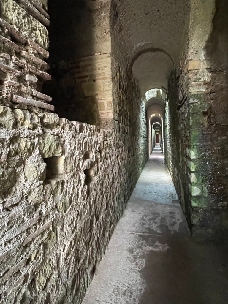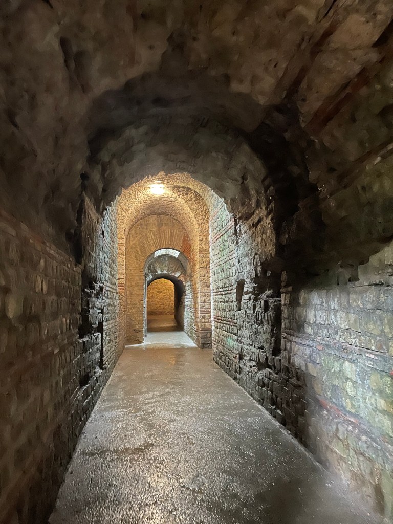 We went underground to see the tunnels and the maintenance wing (service passages) where all the workers operated the heating systems for the baths. There were rows and rows of these tunnels underground, like mazes.